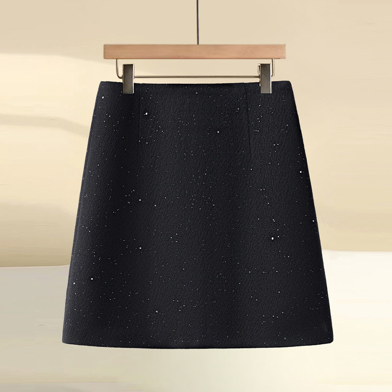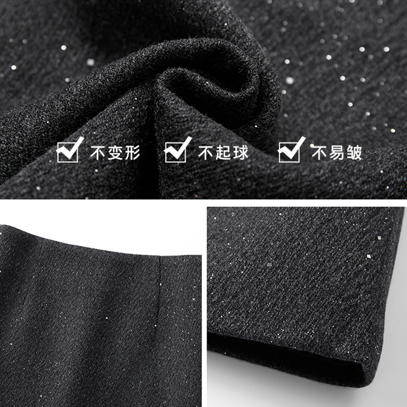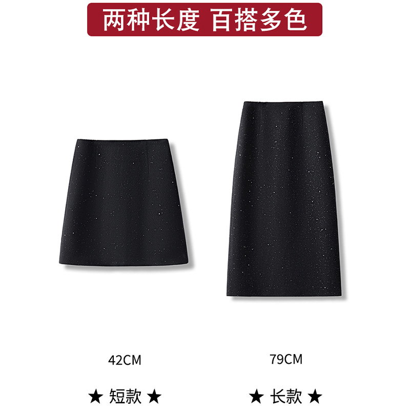 亮片黑色短裙女秋冬季2025新款高级感显瘦毛呢包臀裙a字半身裙子