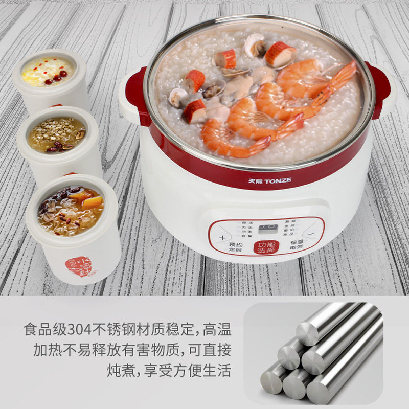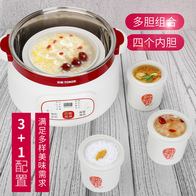 天际电炖锅白瓷隔水炖燕窝盅不锈钢煮粥煲汤锅全自动BB煲一锅四胆