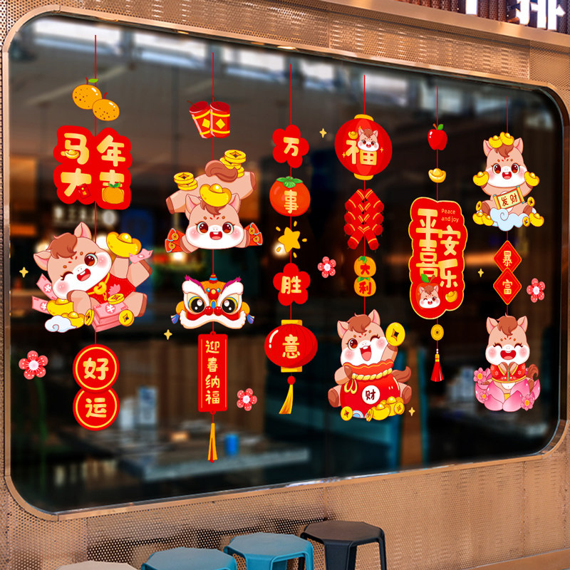 2026新年装饰橱窗贴纸春节静电贴窗花玻璃门贴纸马年过年布置窗花