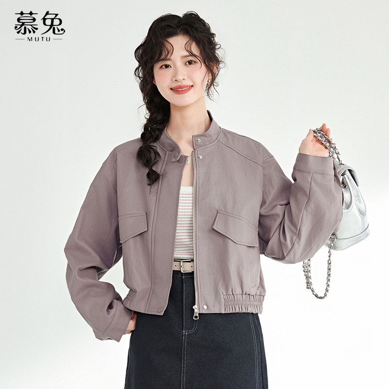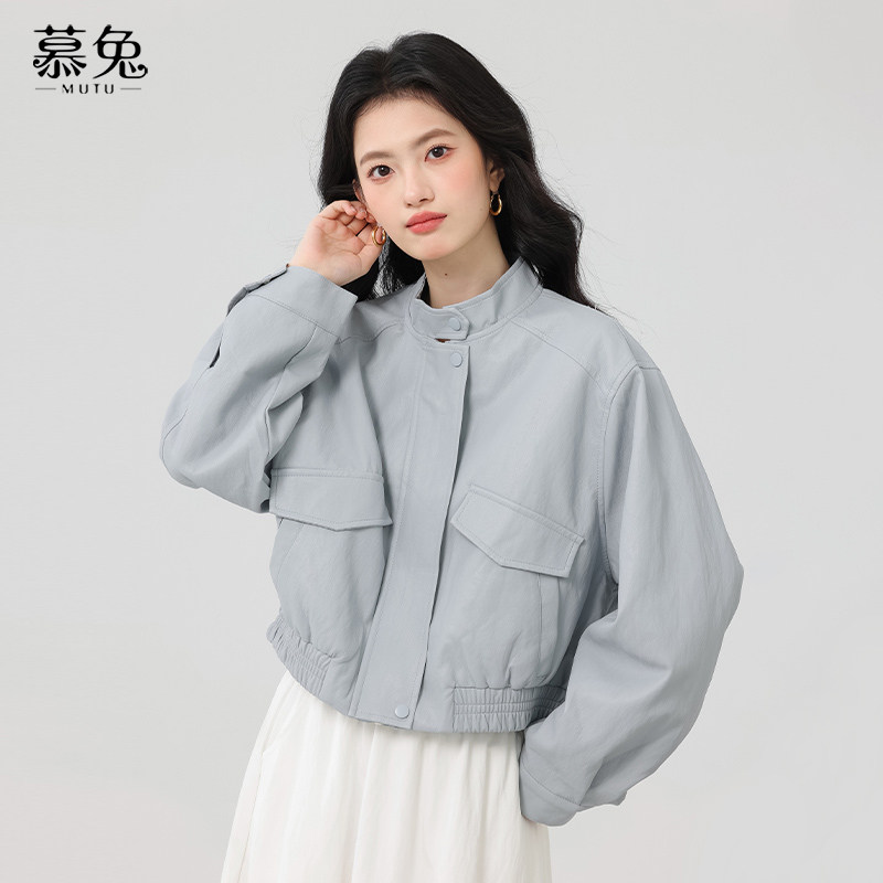 慕兔复古PU皮衣立领夹克外套女2025秋季新款宽松机车服短款上衣