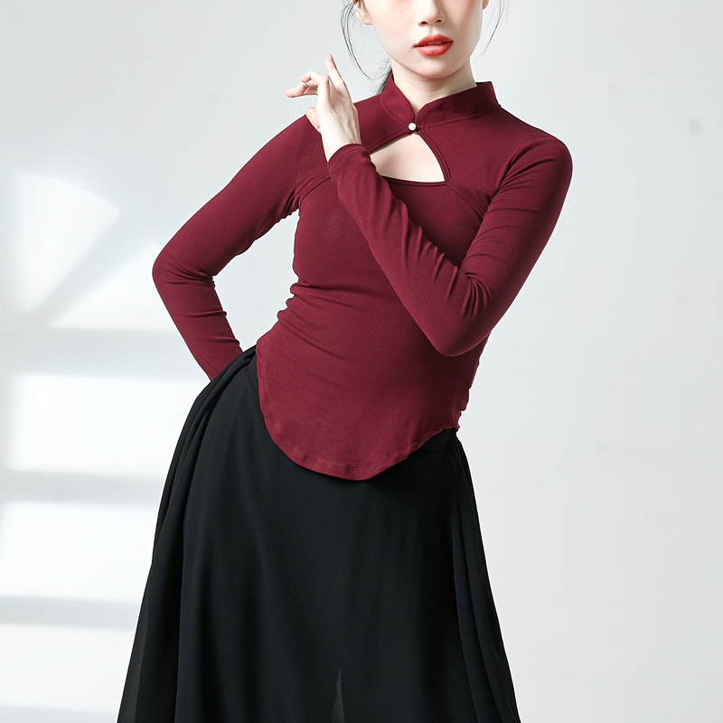 古典舞旗袍上衣民族现代中国舞练功服装女成人镂空长袖舞蹈演出服