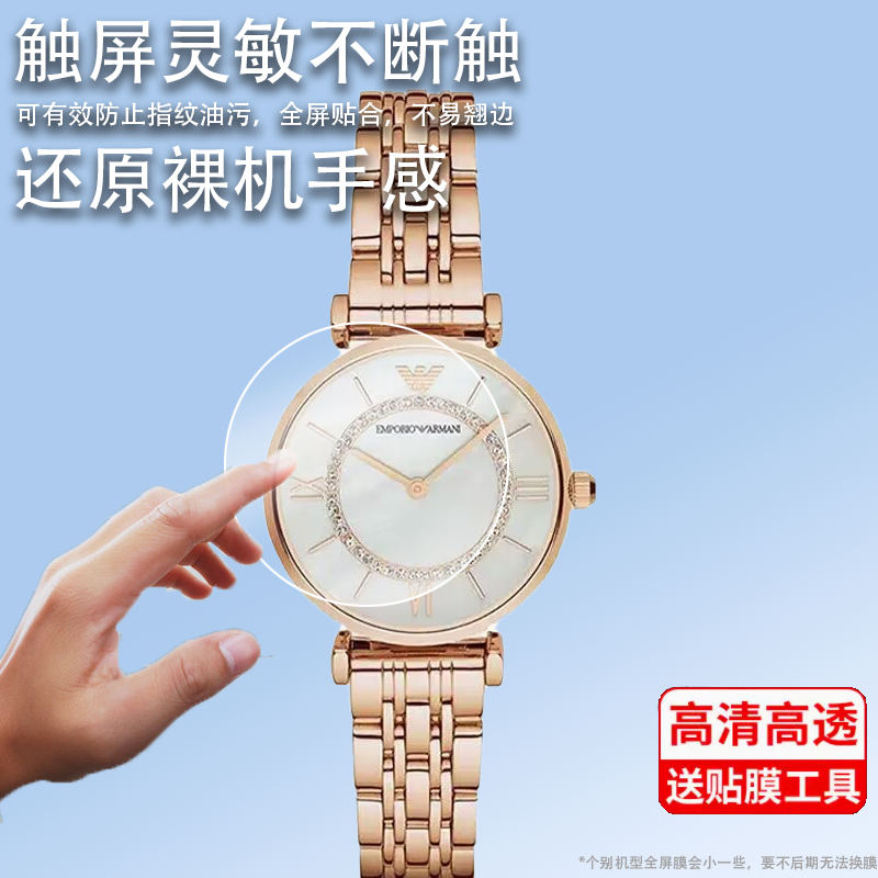 适用于阿玛尼AR1907手表钢化膜阿玛尼摩天轮手表贴膜女款满天星腕表AR1907-12屏幕保护膜圆形镜片玻璃膜