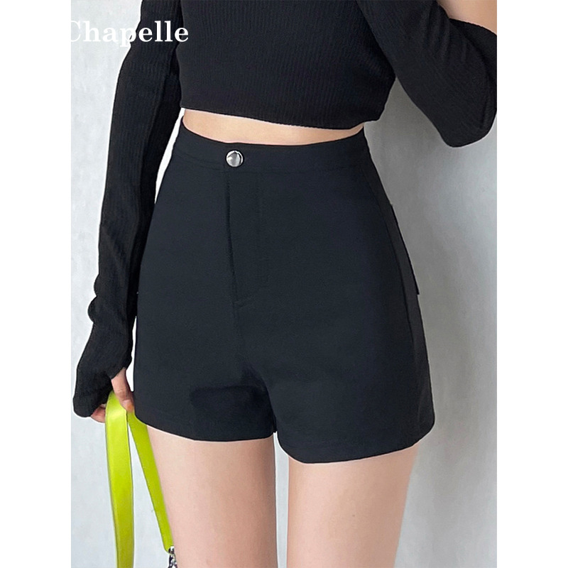 拉夏贝尔黑色修身短裤女秋冬新款高腰打底a字外穿小个子西装热裤