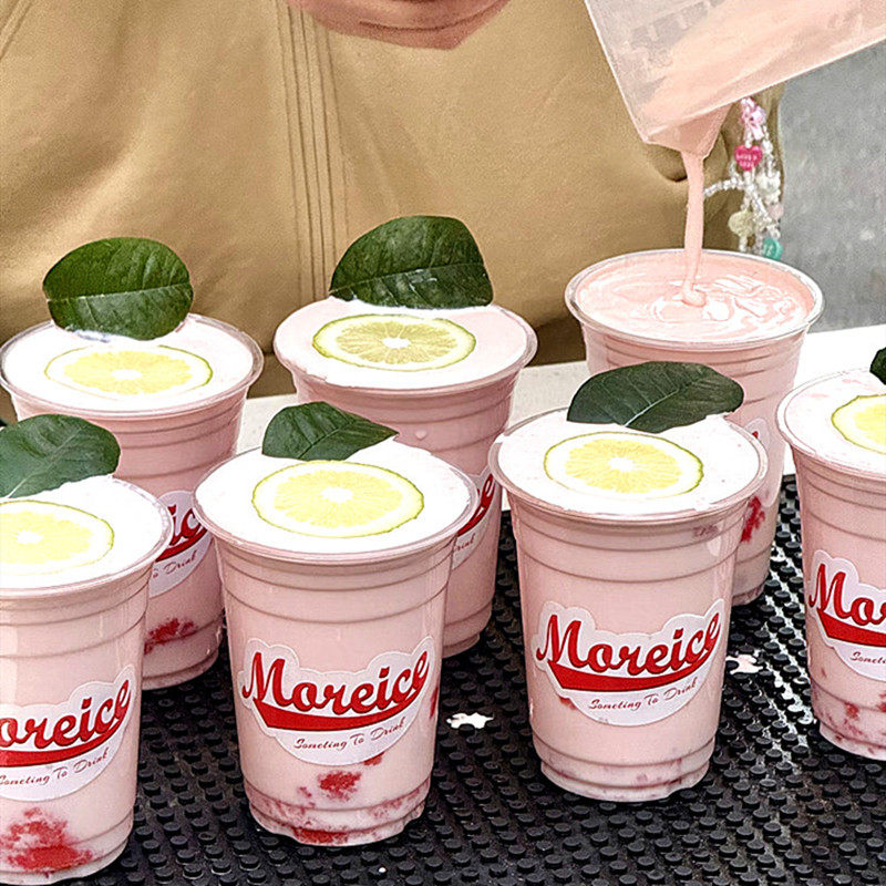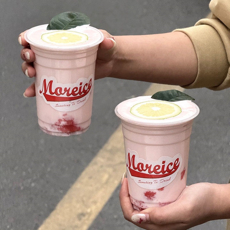 柠檬茶杯一次性奶茶杯带盖98口径PET冷饮商用打包杯芭乐奶昔杯子