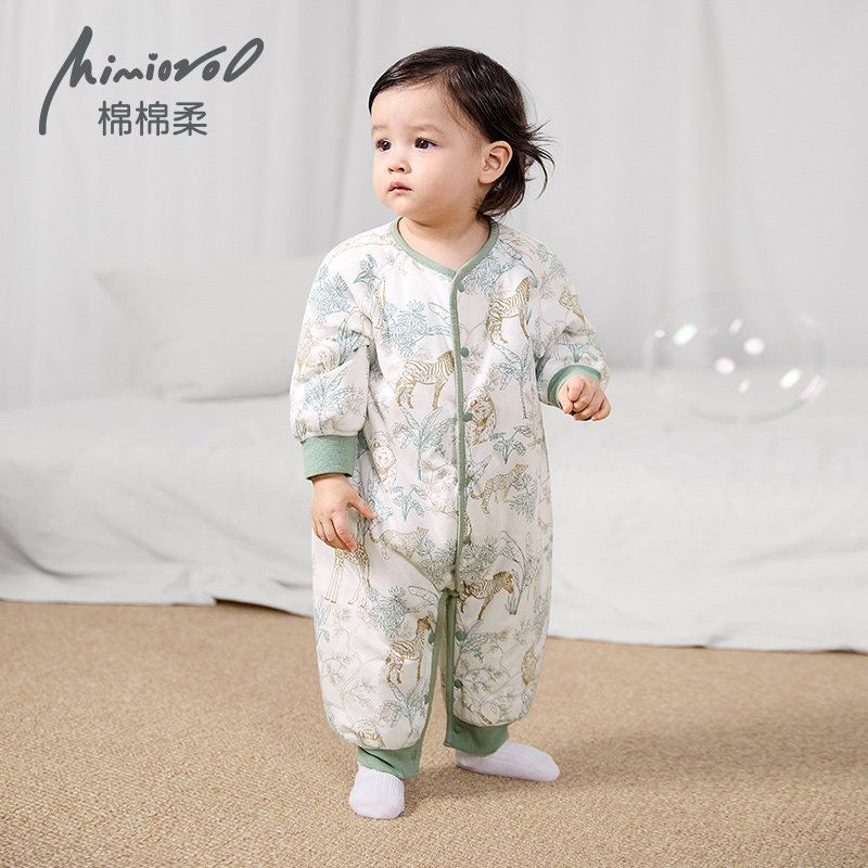 宝宝夹棉连体衣秋冬婴儿保暖睡衣
