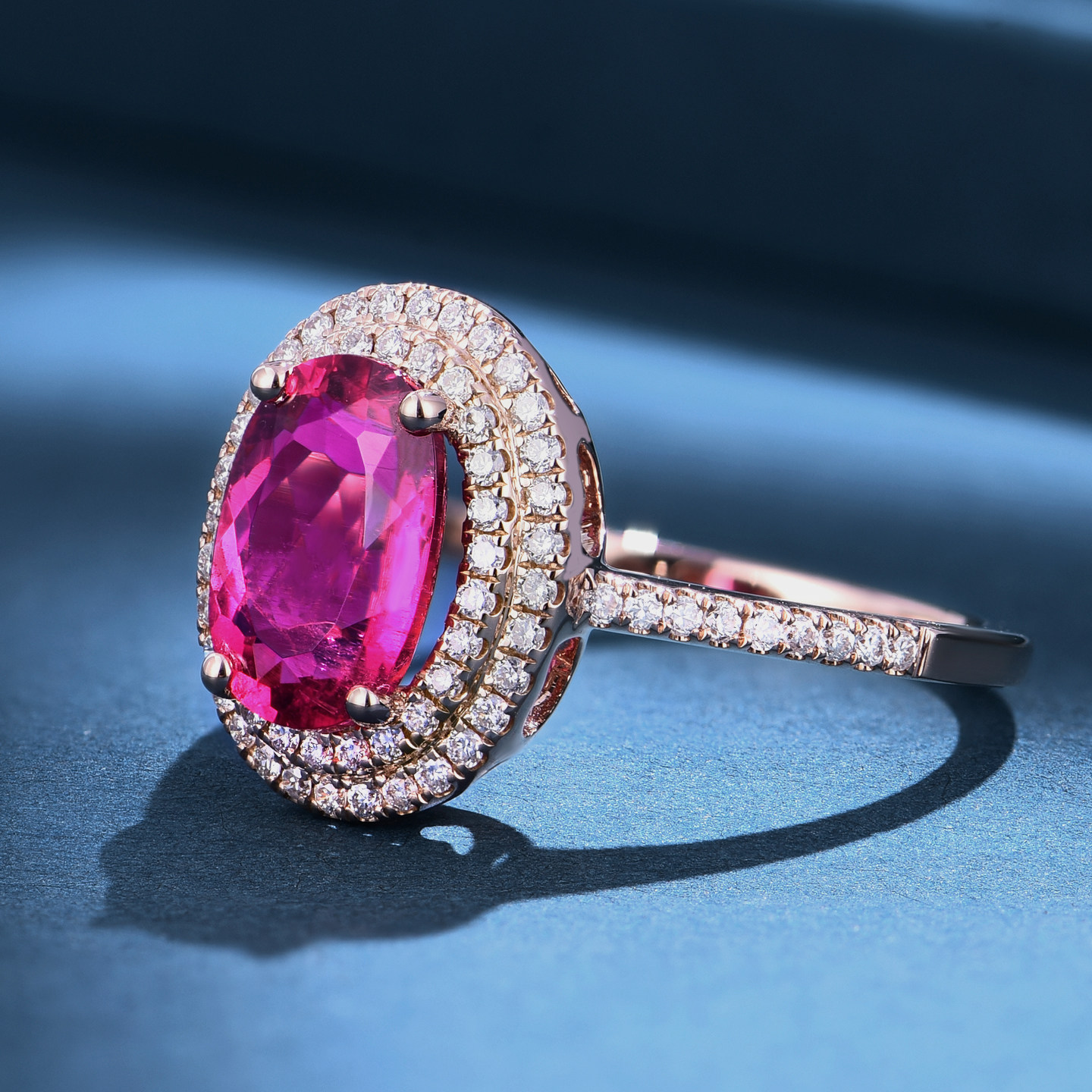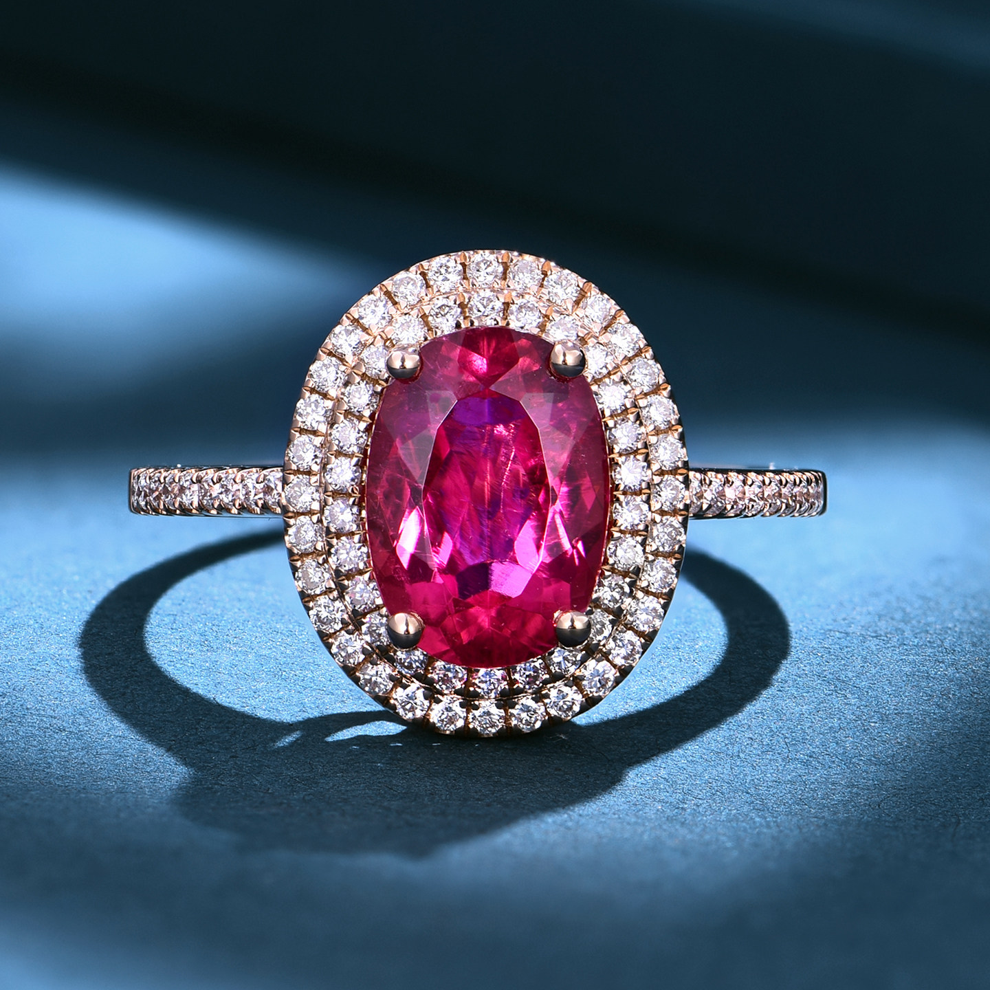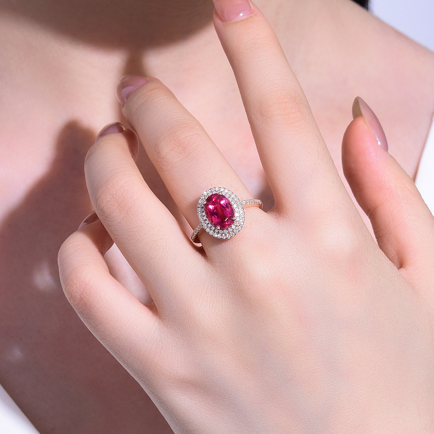 私意珠宝 天然彩宝1.82克拉鸽血红红碧玺戒指18K金钻石首饰定制女