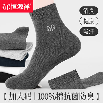 恒源祥加大码袜子男士中筒袜100纯棉抗菌防臭春秋42-46码商务男袜