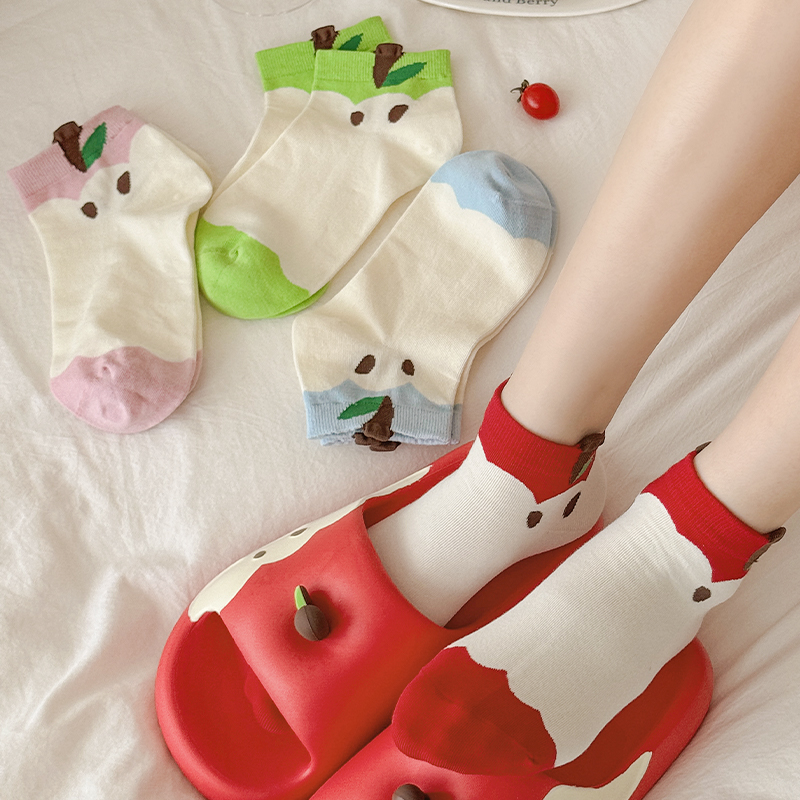 chedoir少女心苹果袜子女款可爱卡通ins短袜透气薄款2025新款船袜