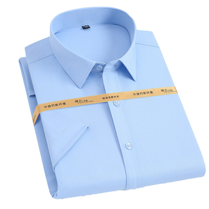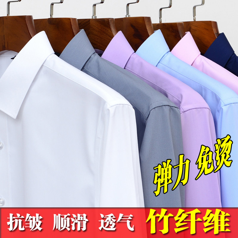 衬衫男士抗皱免烫大码竹纤维弹力短袖男士商务休闲工装白色长袖