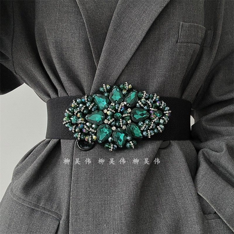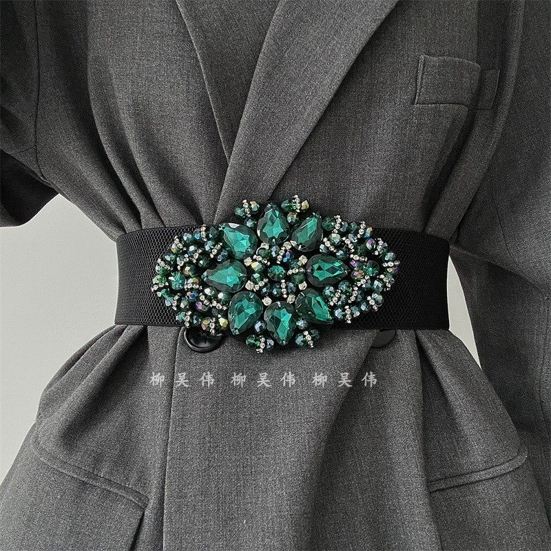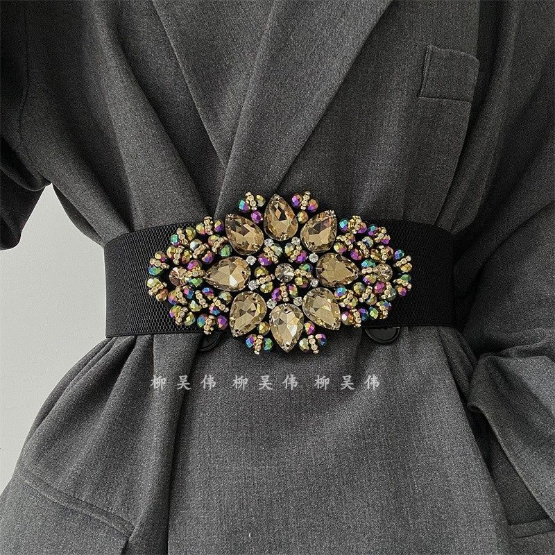 外搭腰封女士松紧宽腰带水钻装饰毛衣大衣配连衣裙子收腰百搭皮带