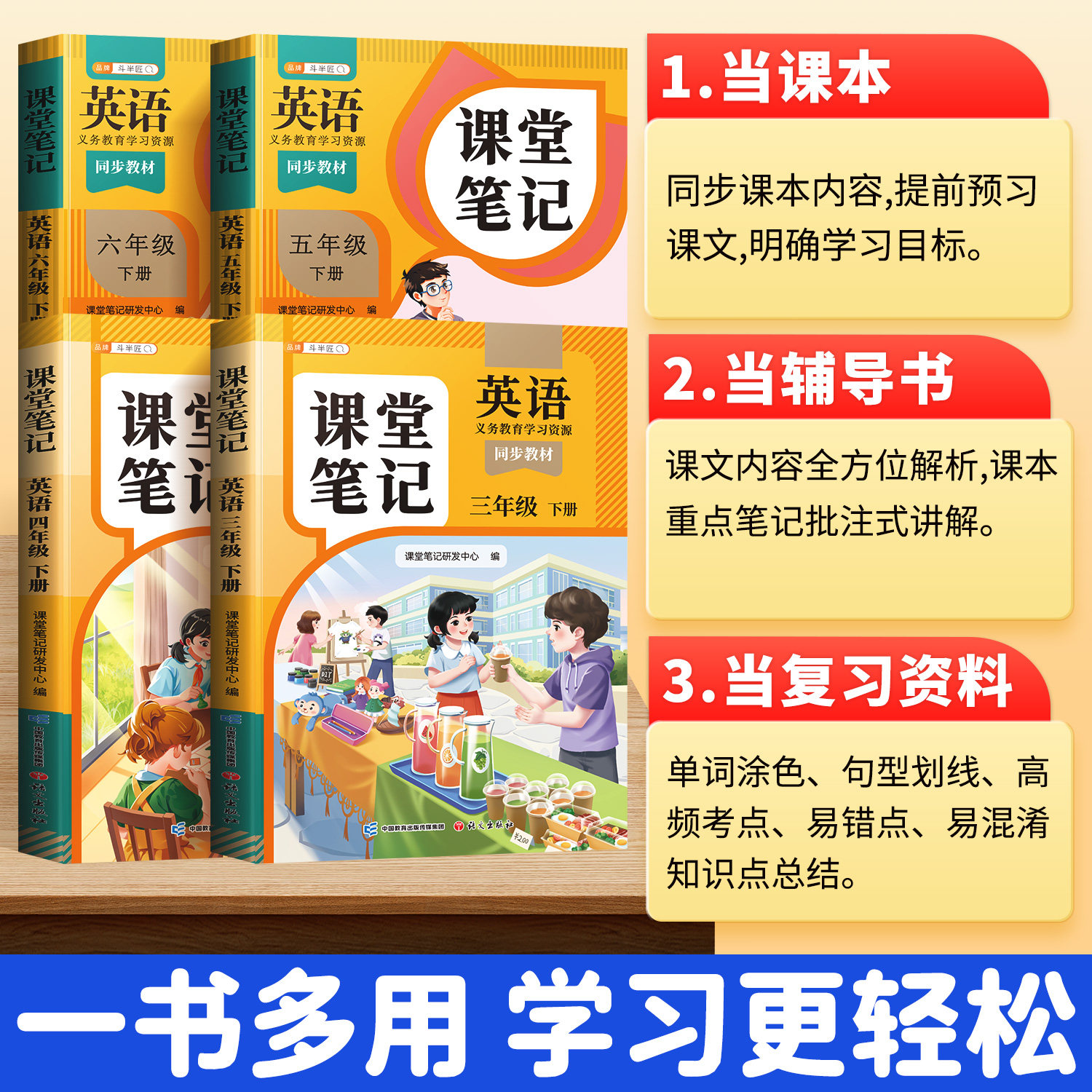 2026适用新版英语课堂笔记三年级四年级五六年级上册下册人教版pep三下同步练习译林版课本3起点外研版小学教材全解随堂预习教辅书