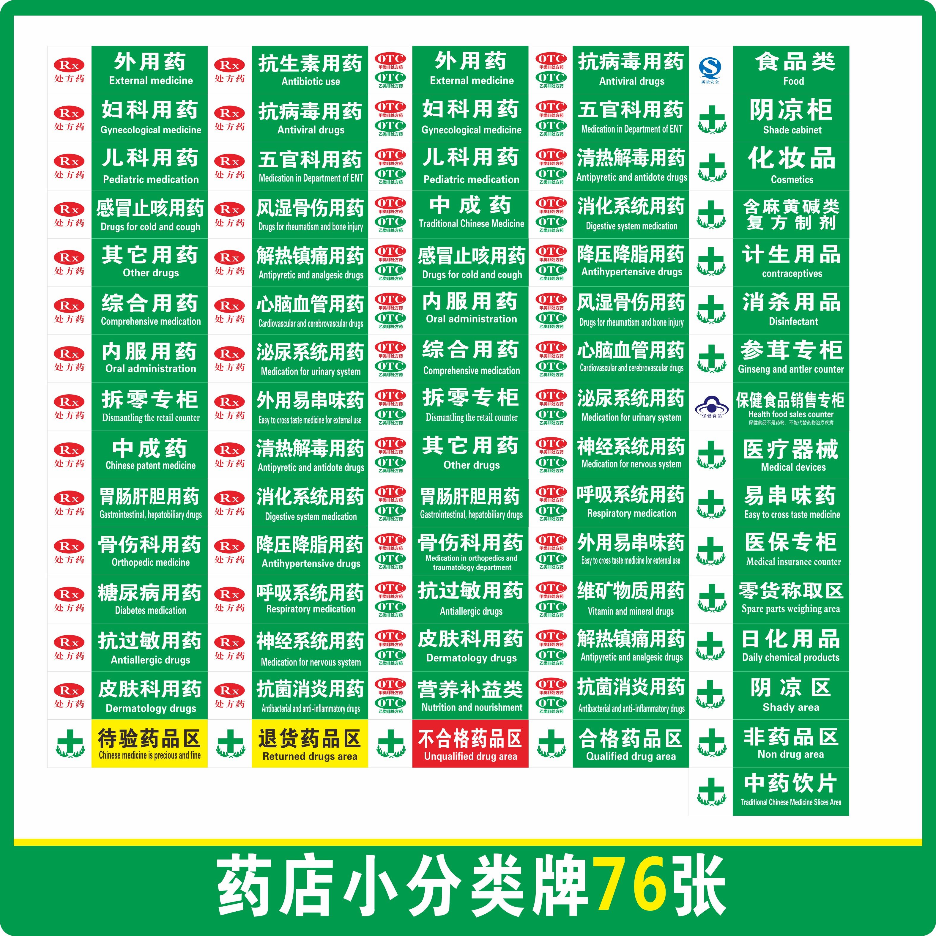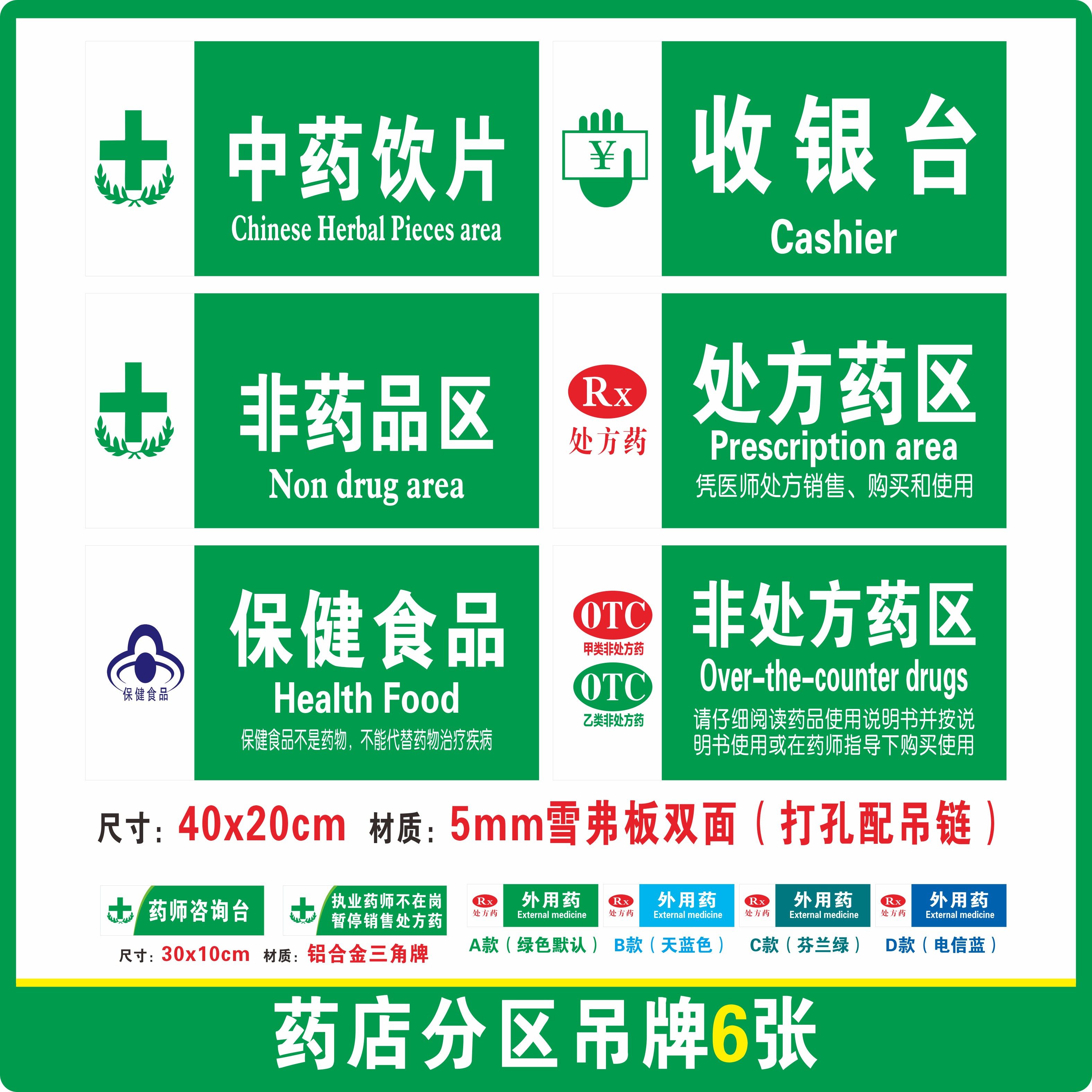 药品分类牌药店分类医院药店标识药房标识牌标贴标签GSP认证全套