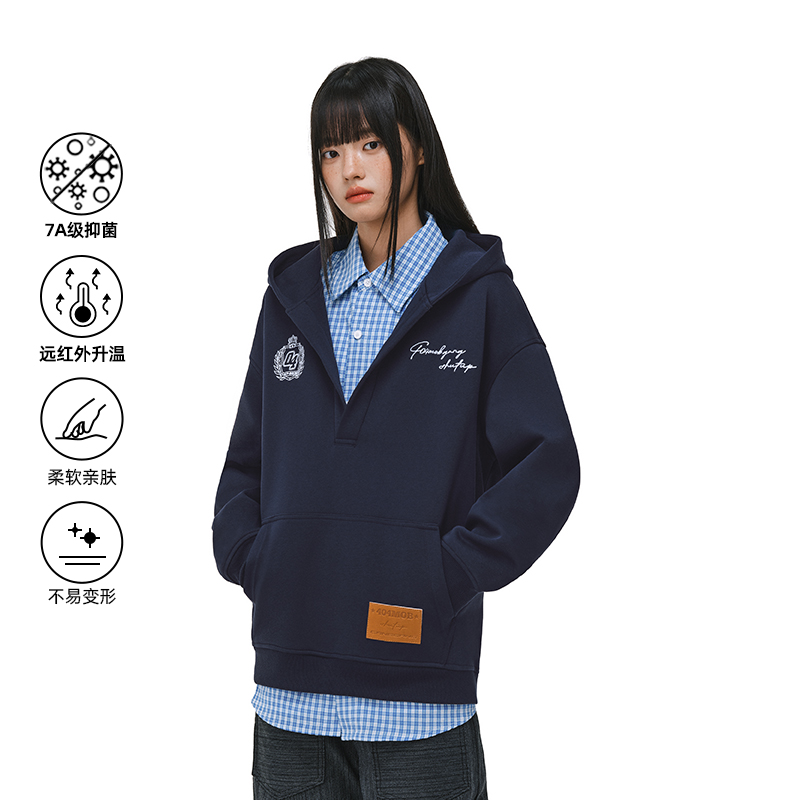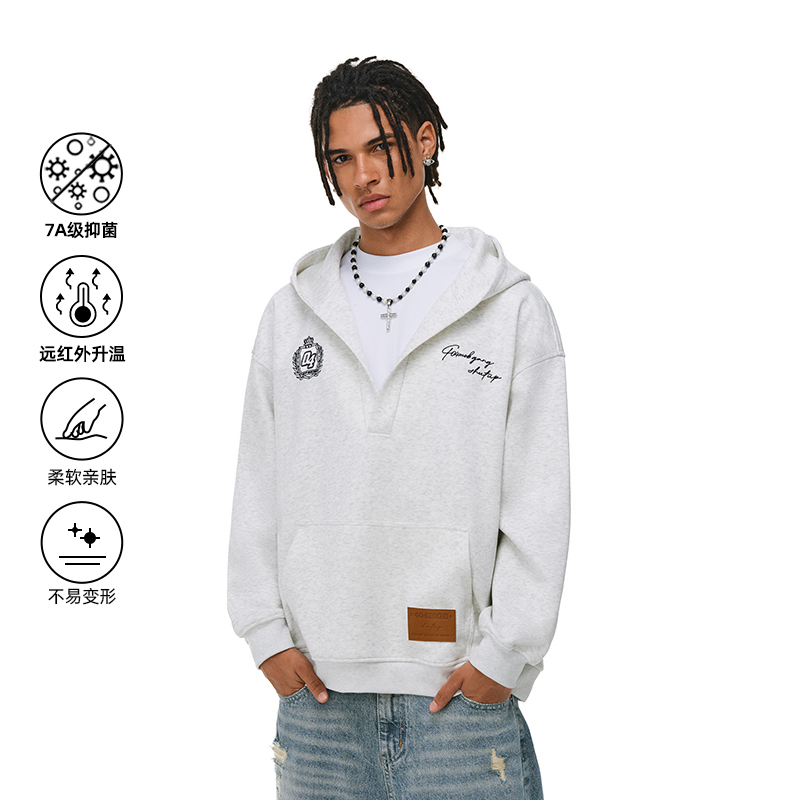 404MOB美式刺绣大V领设计连帽卫衣秋冬新款休闲宽松情侣上衣外套