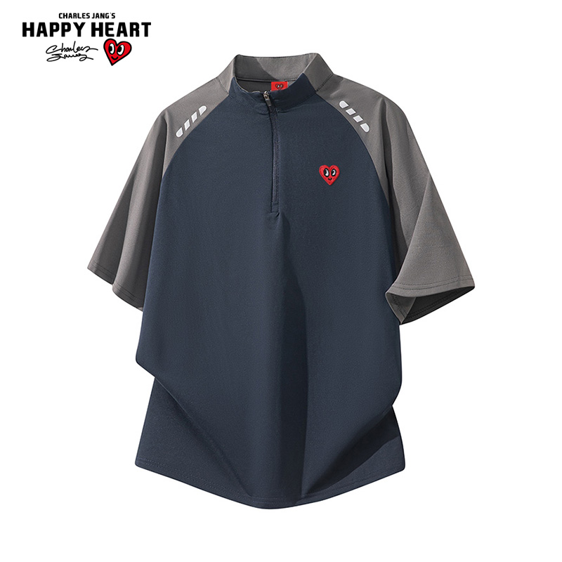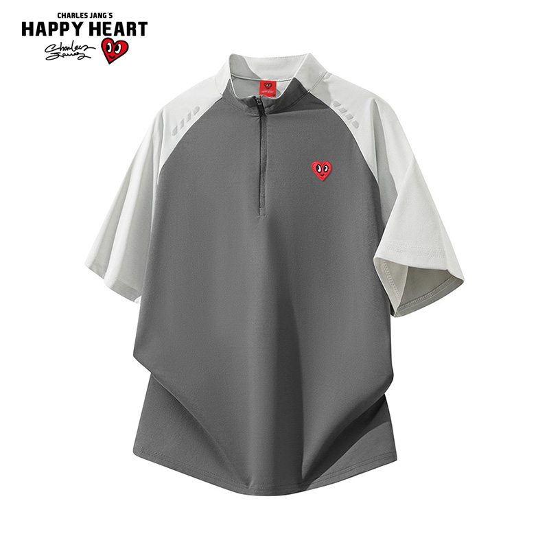 查尔斯桃心 拼色短袖POLO衫男夏季新款潮牌百搭立领速干运动上衣