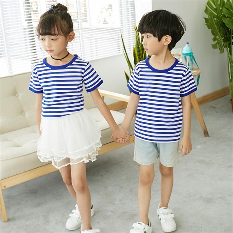 夏季男童女童宝宝海魂衫童装纯棉短袖t恤 儿童条纹演出服学生半袖
