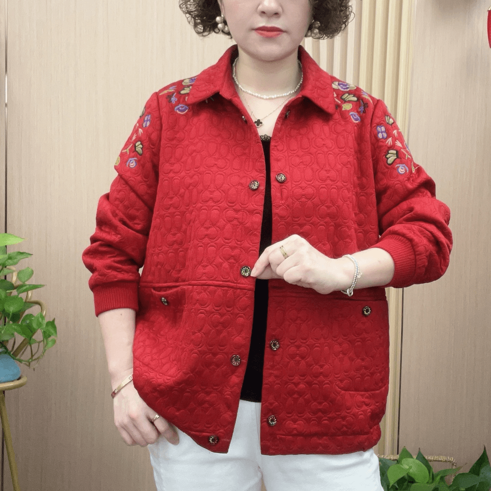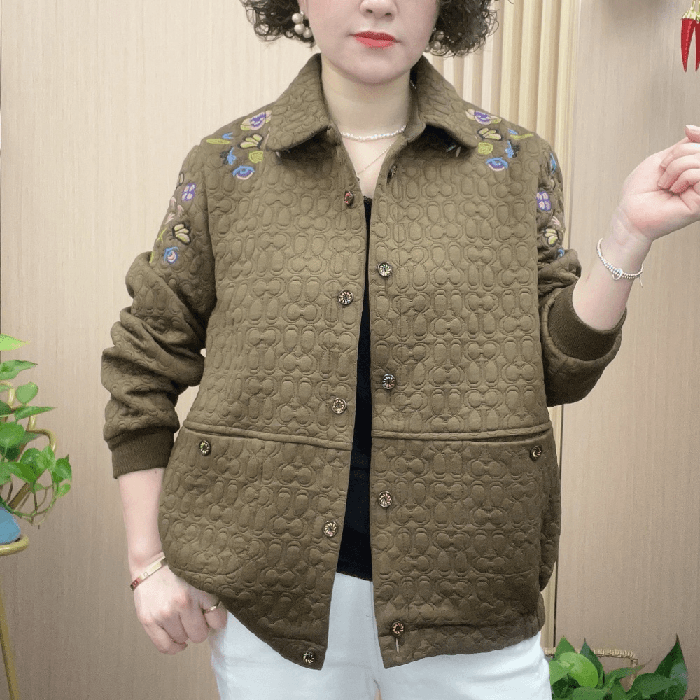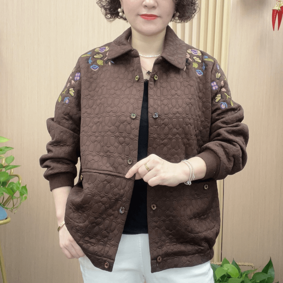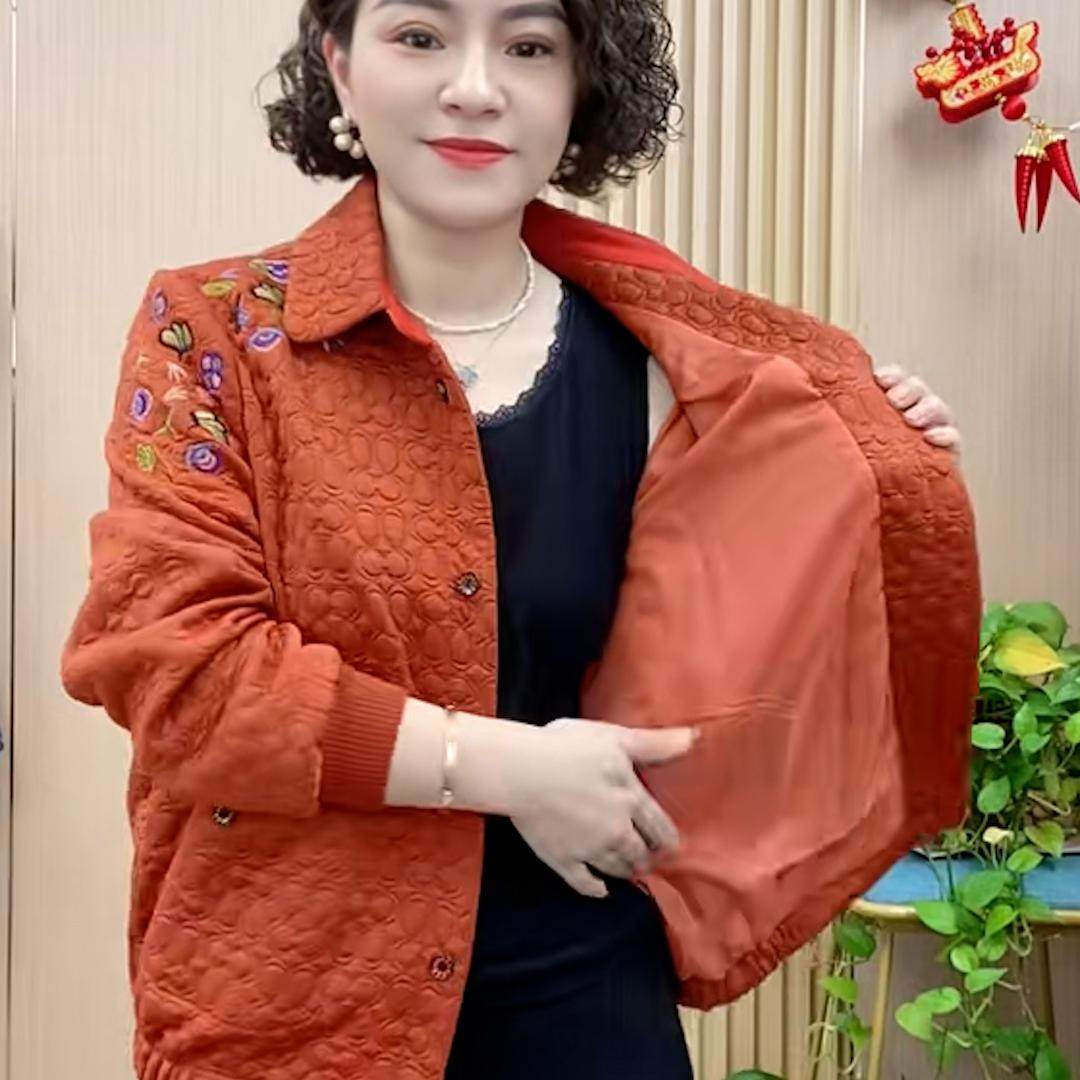中老年洋气绣花翻领夹克外套女秋季中年妈妈装休闲减龄显瘦上衣