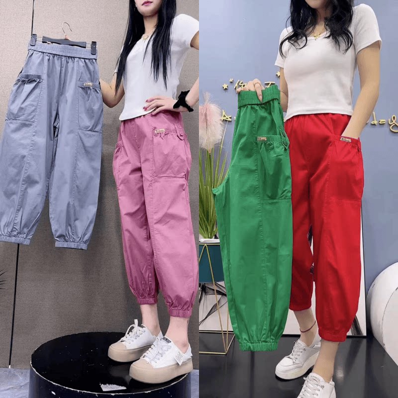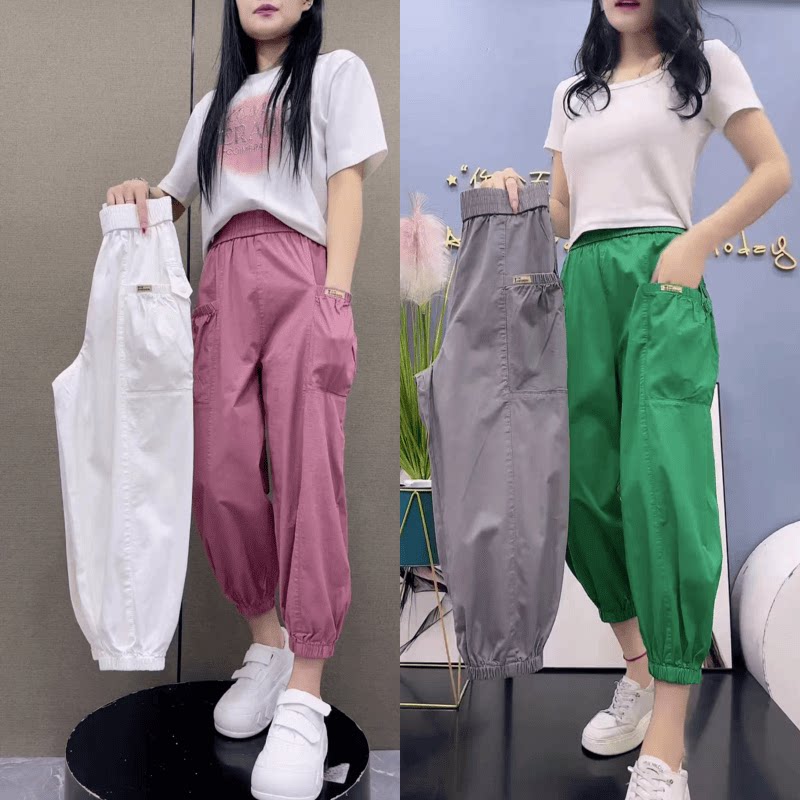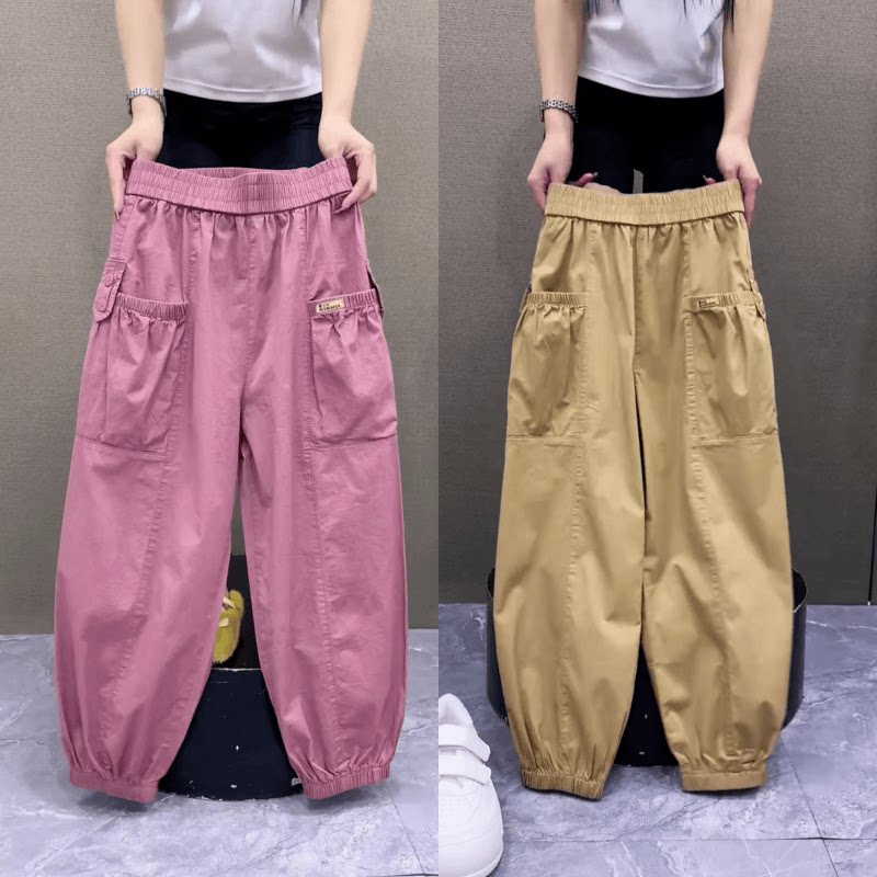 2025夏季新款卫裤女丝光棉哈伦裤高腰宽松显瘦薄款小个子灯笼裤