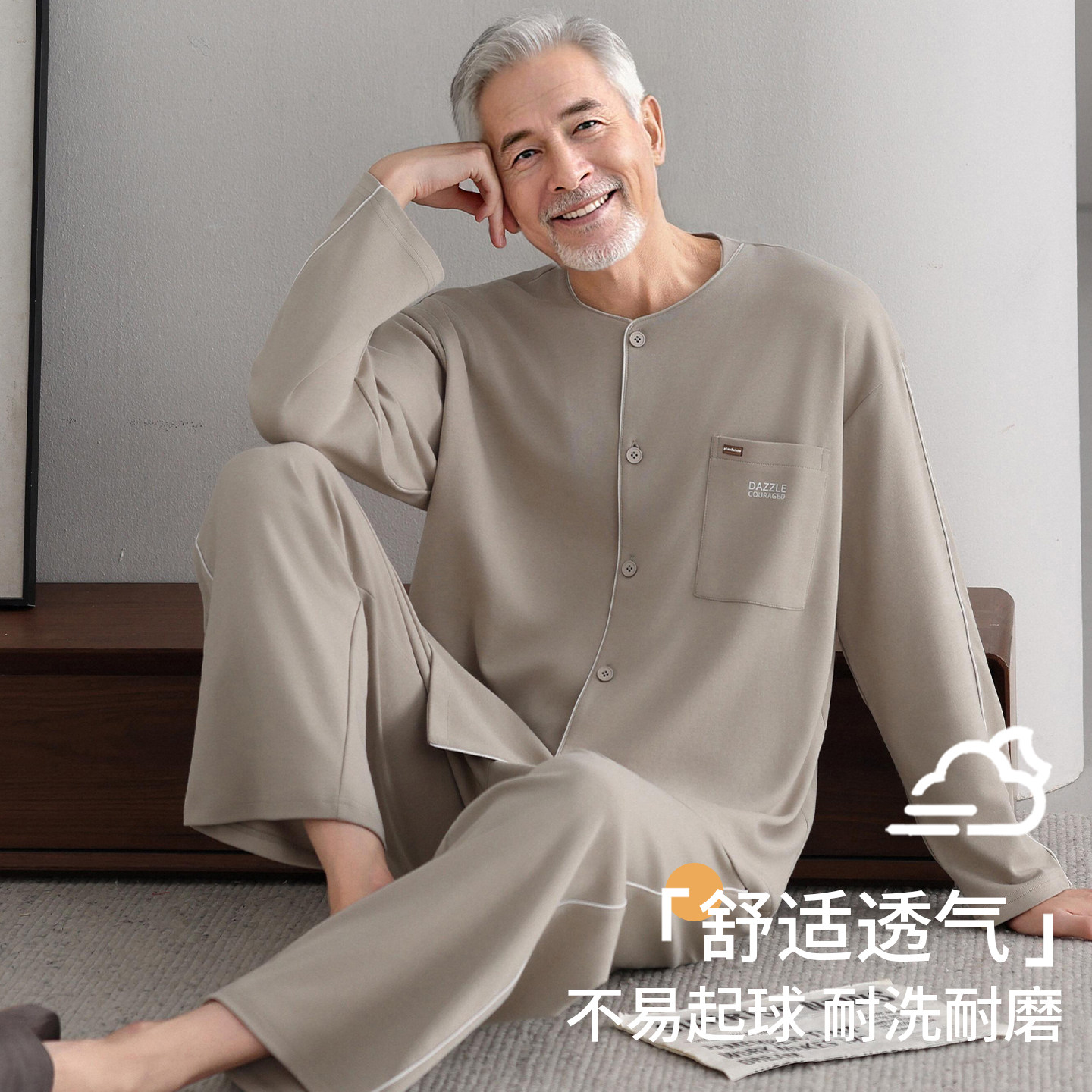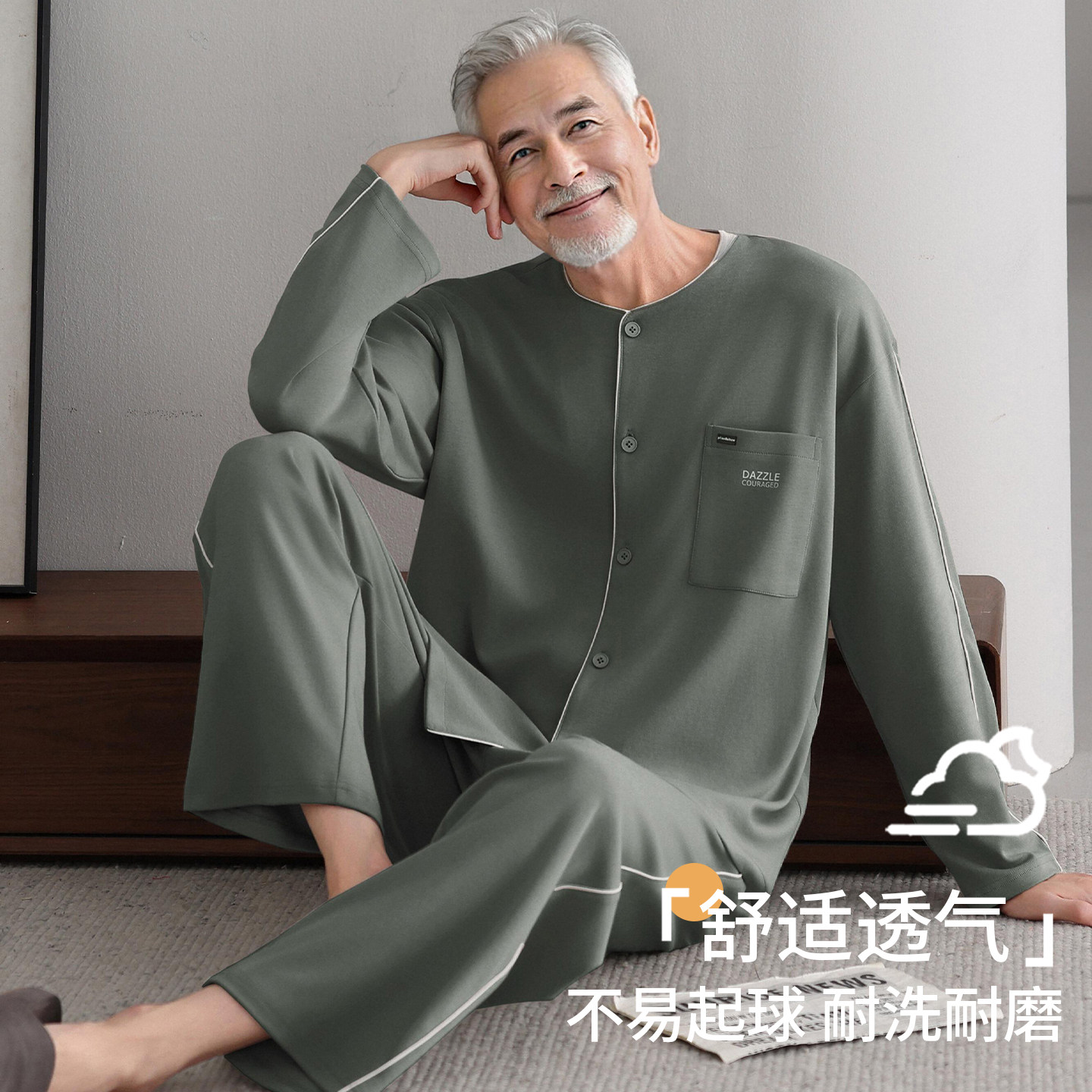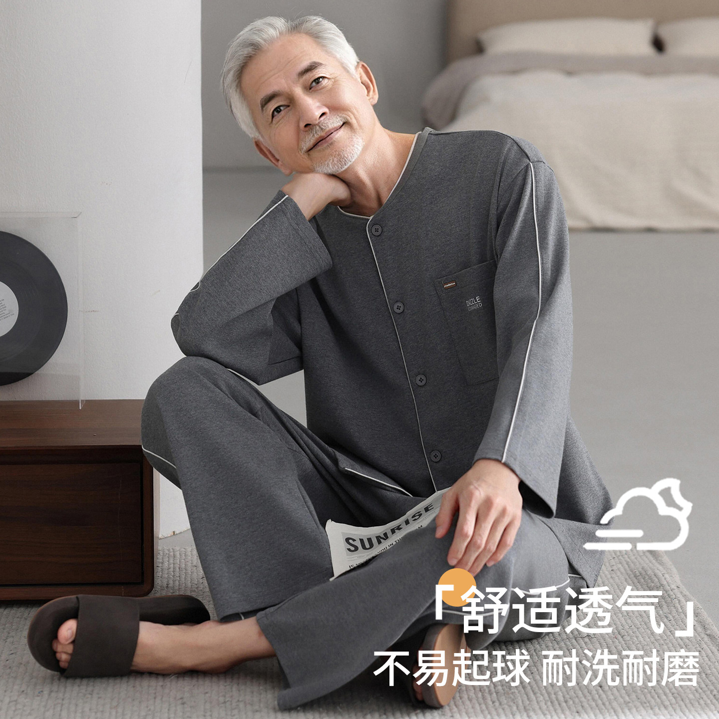 猫人长袖爸爸纯棉睡衣春秋薄款中老年人爷爷大码可外穿家居服套装