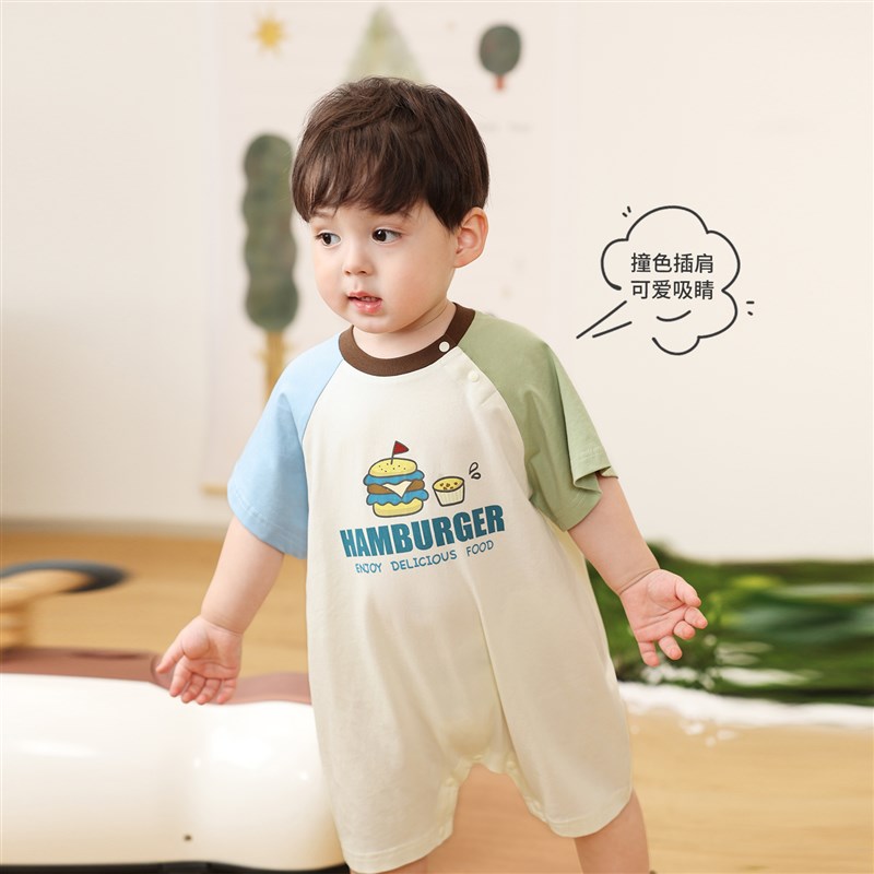 小O爸男婴童 宝宝可爱运动哈衣夏季短袖连体衣2025年新款婴儿爬服