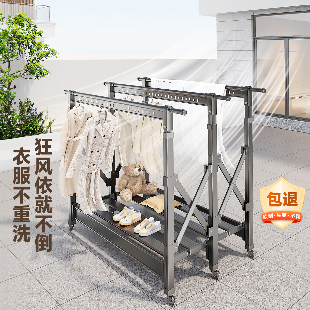 晾衣架户外防风落地室外晒被子神器家用阳台折叠庭院加粗加厚衣架