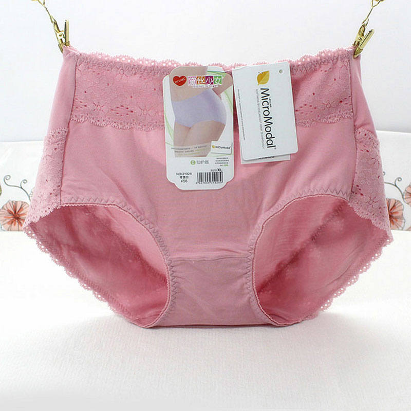 黛丝少女内裤莫代尔面料蕾丝花边柔软舒适加大码高腰包臀女士内裤