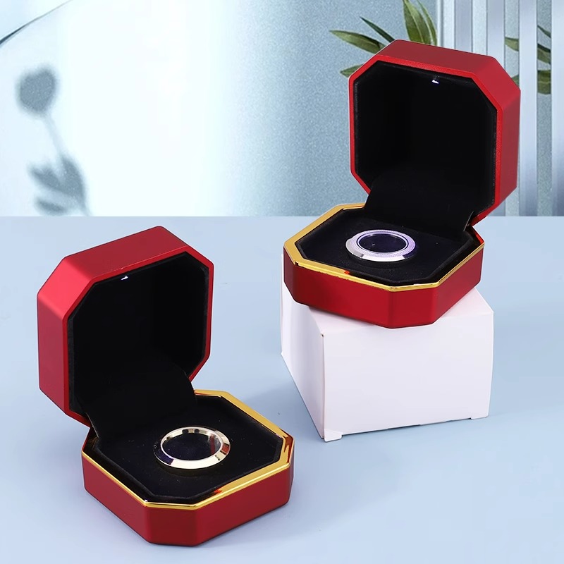 首饰盒收纳盒高档精致LED灯耳钉耳环戒面裸石盒彩宝钻石收纳盒子