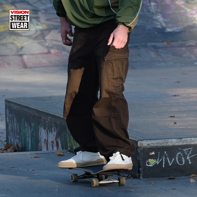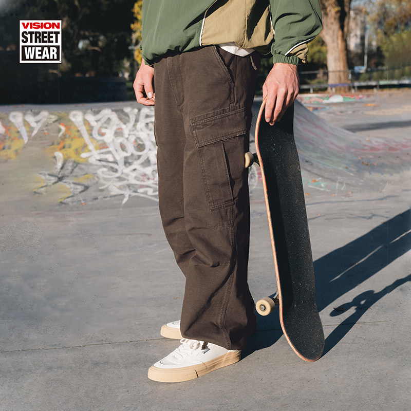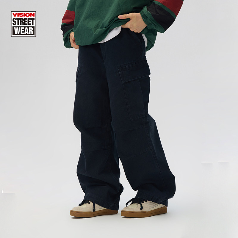 VISION官方 美式复古水洗做旧宽松双袋抽绳重磅工装裤休闲长裤2色