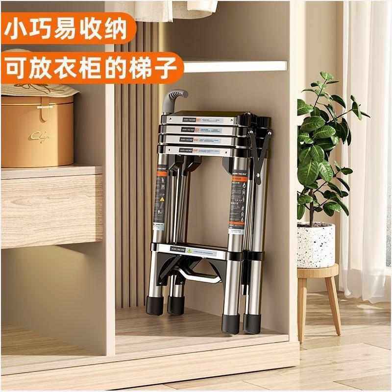 奥鹏多功能家用伸缩梯子加厚不锈钢折叠小梯子室内便携升