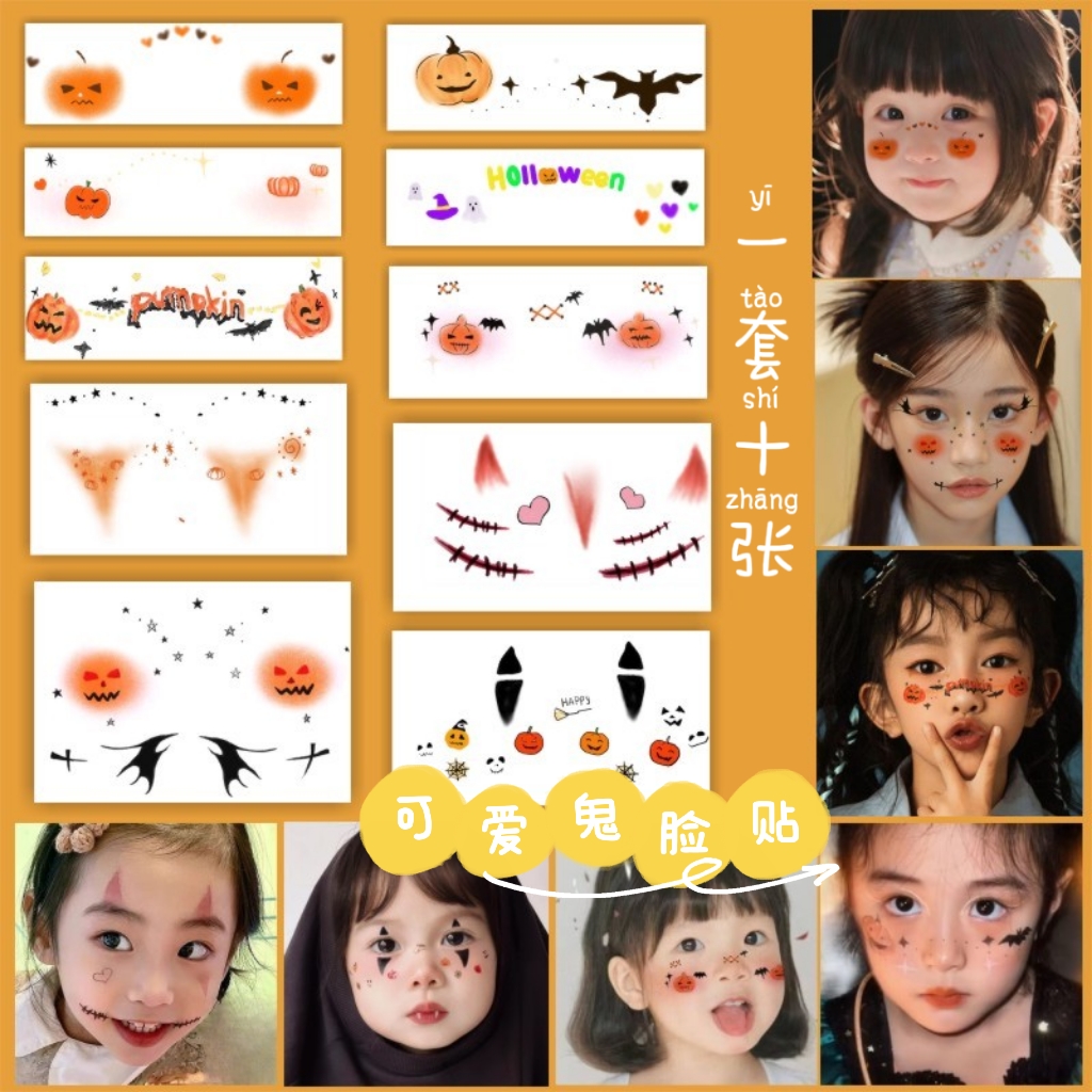 万圣节儿童纹身贴卡通南瓜女巫圣诞节可爱装扮腮红水印贴妆容脸贴