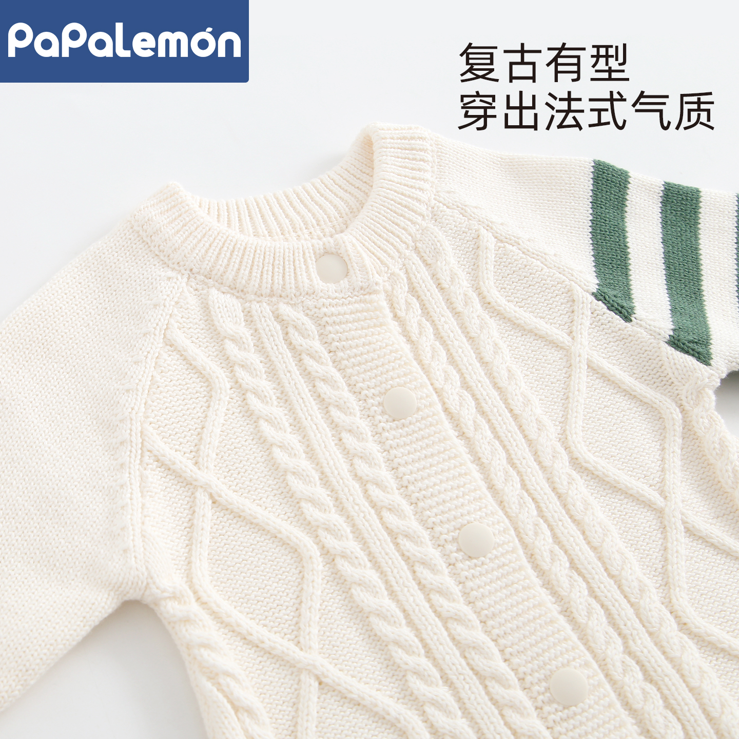 柠檬爬爬宝宝针织连体衣秋冬季纯棉婴儿衣服洋气外出春秋保暖哈衣