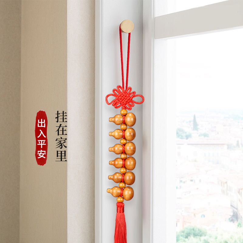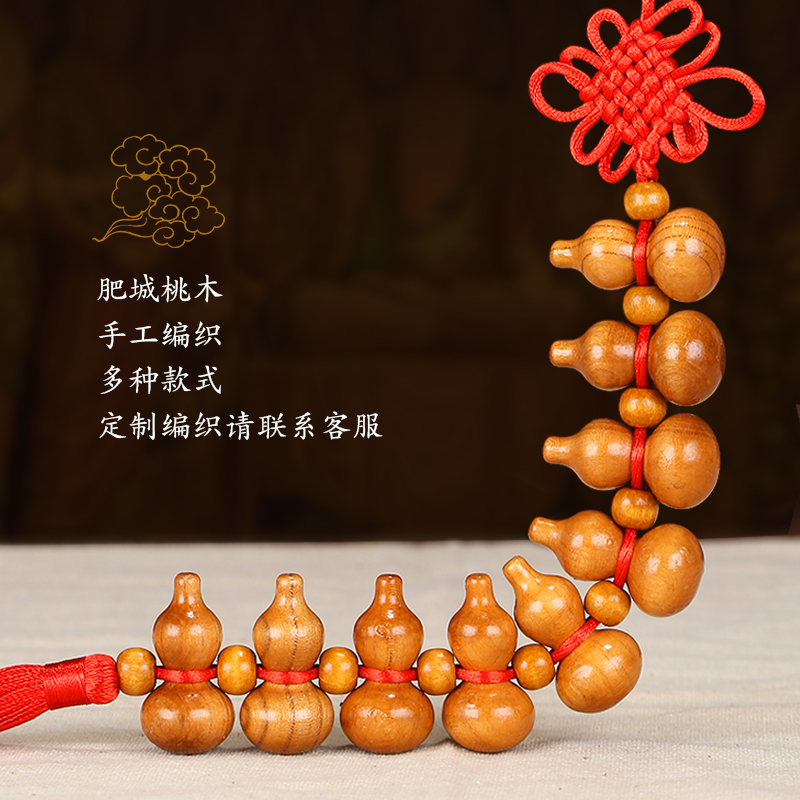 现货速发桃木小葫芦串挂件汽车内挂饰平安横梁实木雕刻装饰品大门