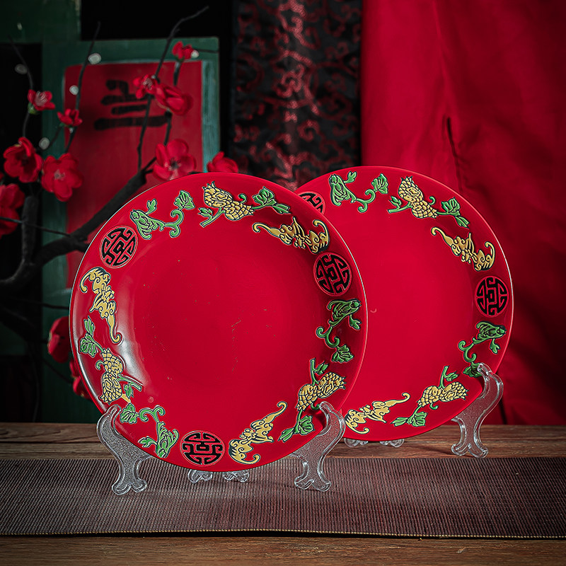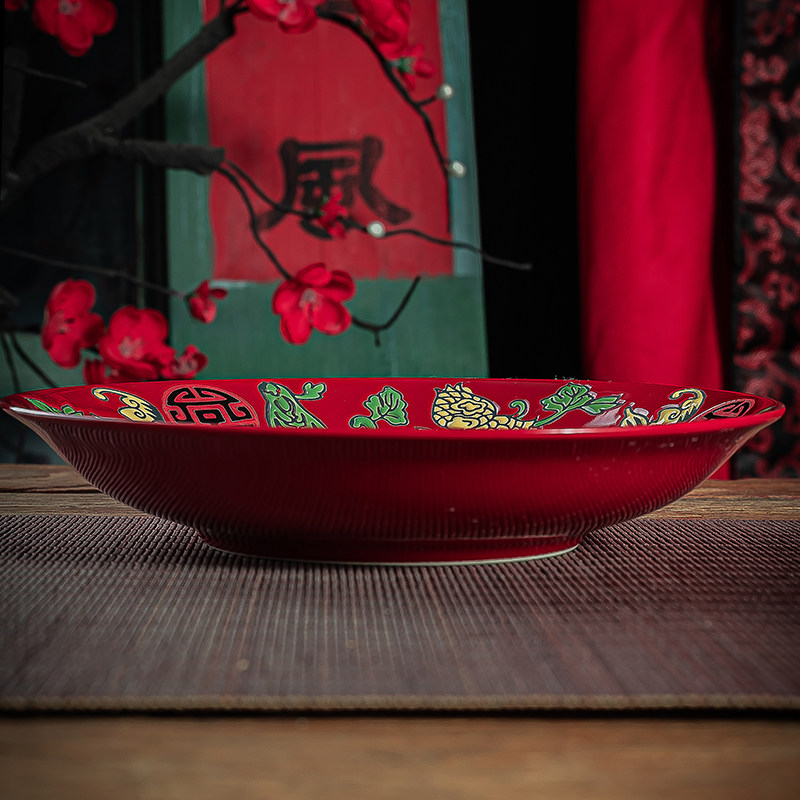 婚庆用品陶瓷汤盘饭盘结婚红色水果花生盘干果巧克力瓜子烟糖果盘