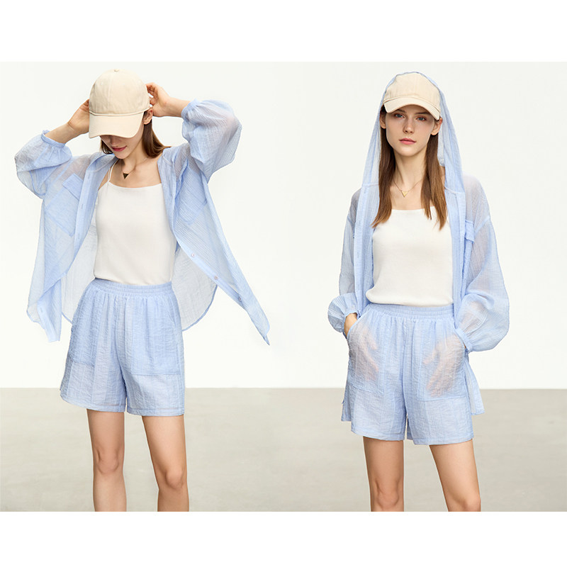 艾米amii女装旗舰店2024夏新款百搭宽松肌理短裤女小个子休闲裤