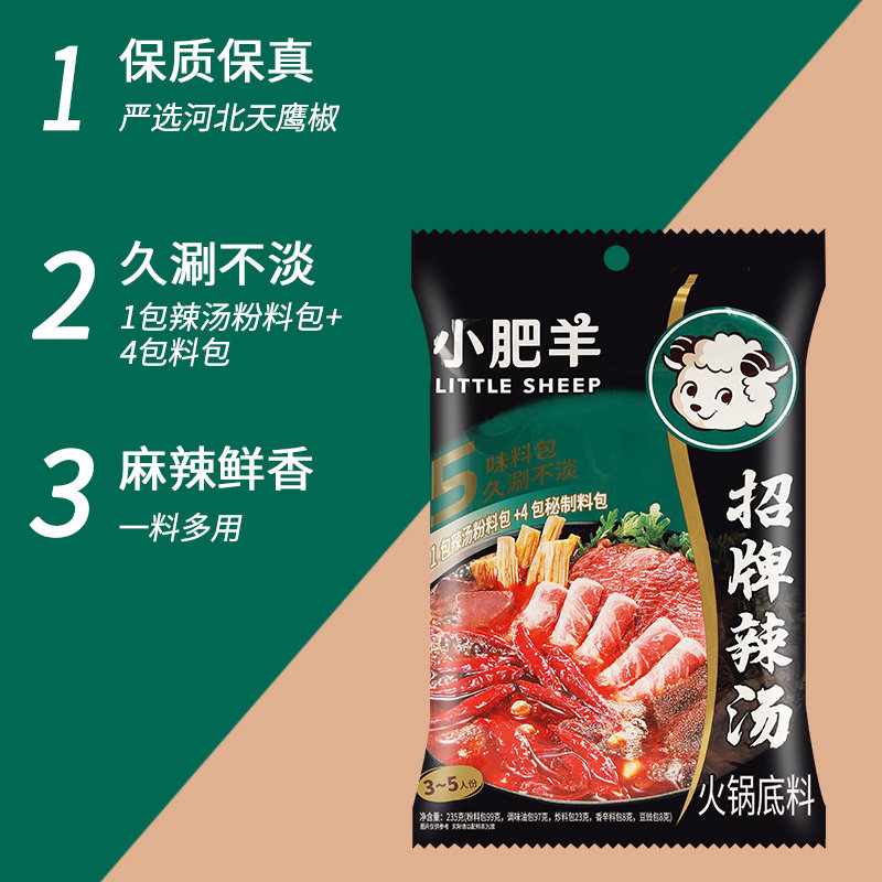 小肥羊粉质辣汤火锅底料235g*3袋家用小包装微辣涮羊肉煲汤调味料