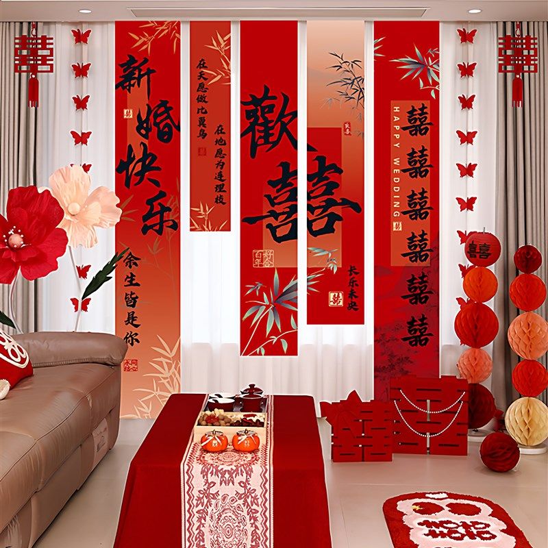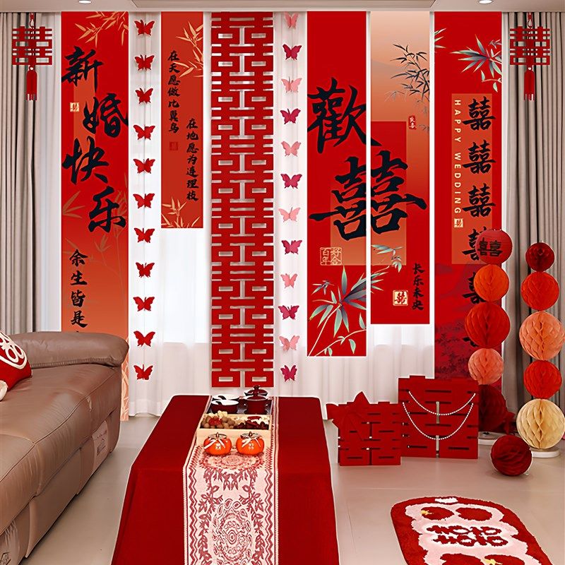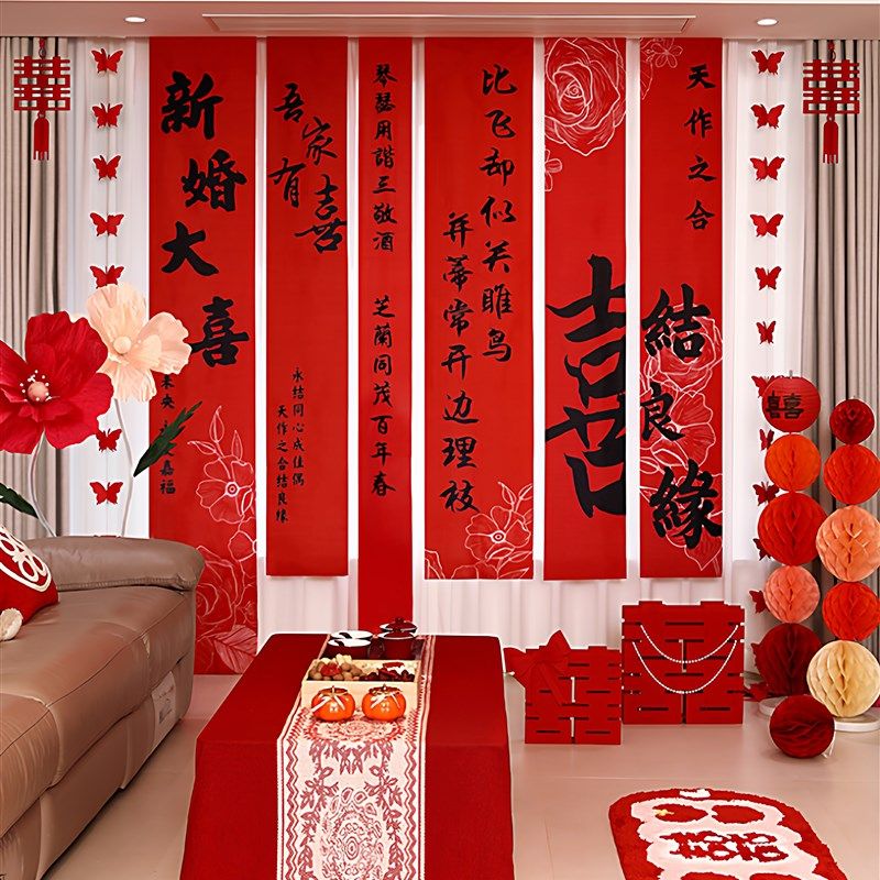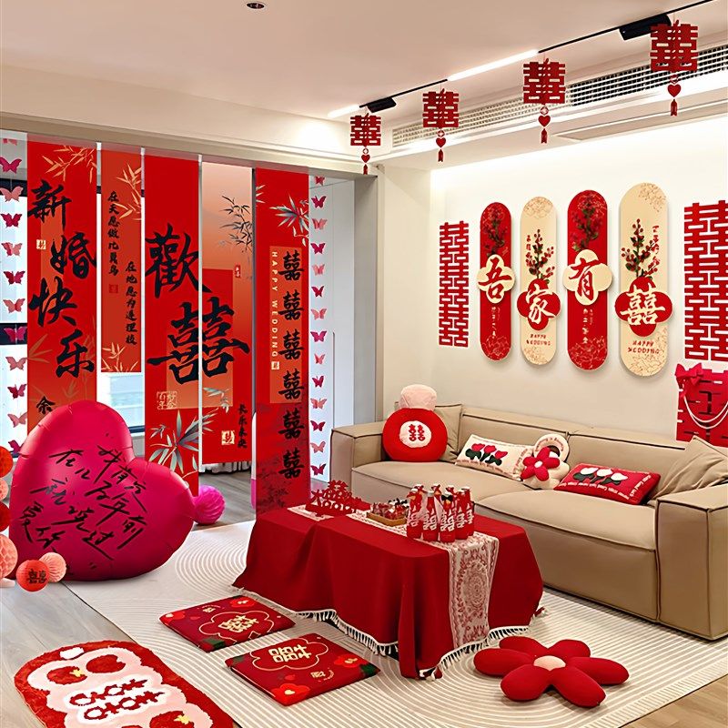 2025婚房布置套装客厅结婚装饰男方女方卧室新房婚礼喜字窗帘挂饰