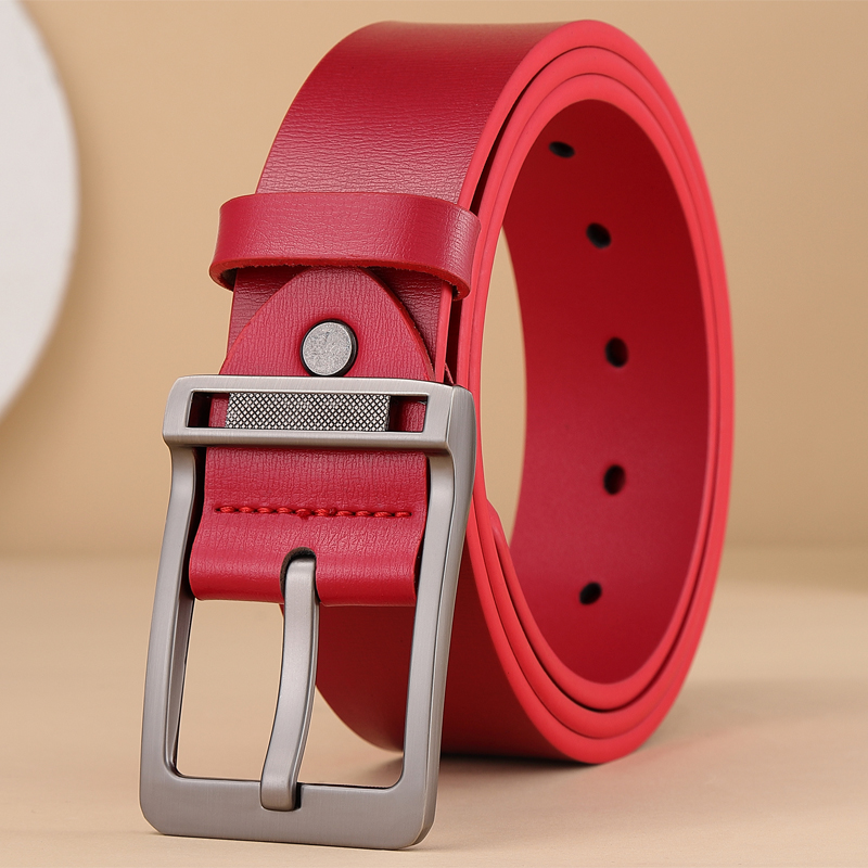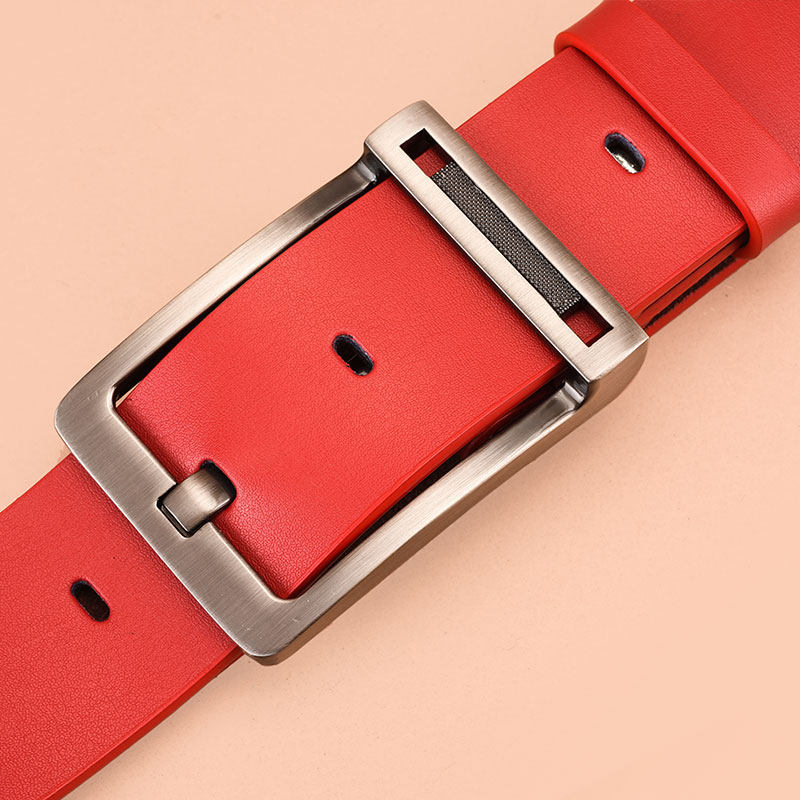 牛皮红腰带女本命年结婚红色皮带男真皮加长大码针扣休闲情侣裤带