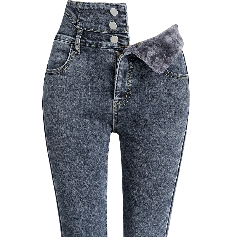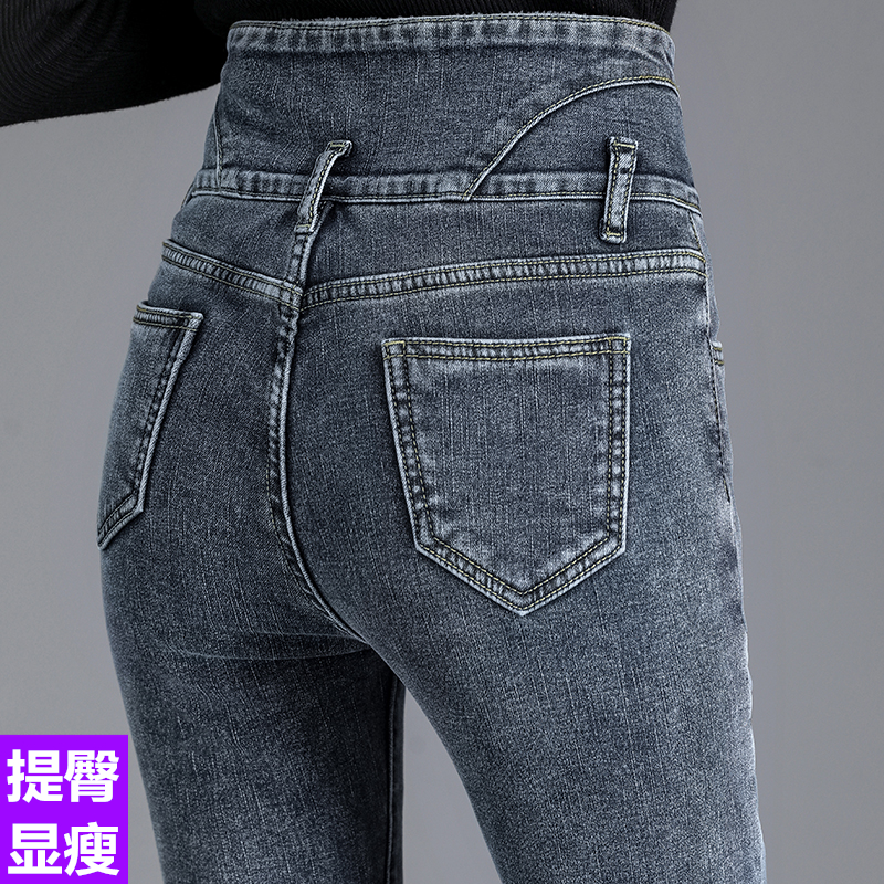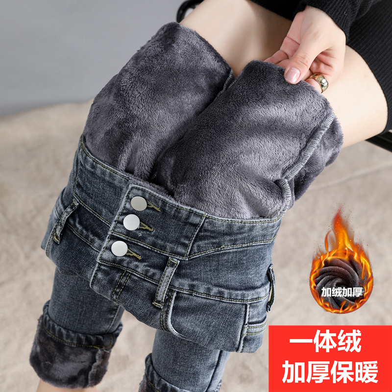 超高腰加绒牛仔裤女2021年新款高腰显瘦冬季小脚加厚保暖长裤修身