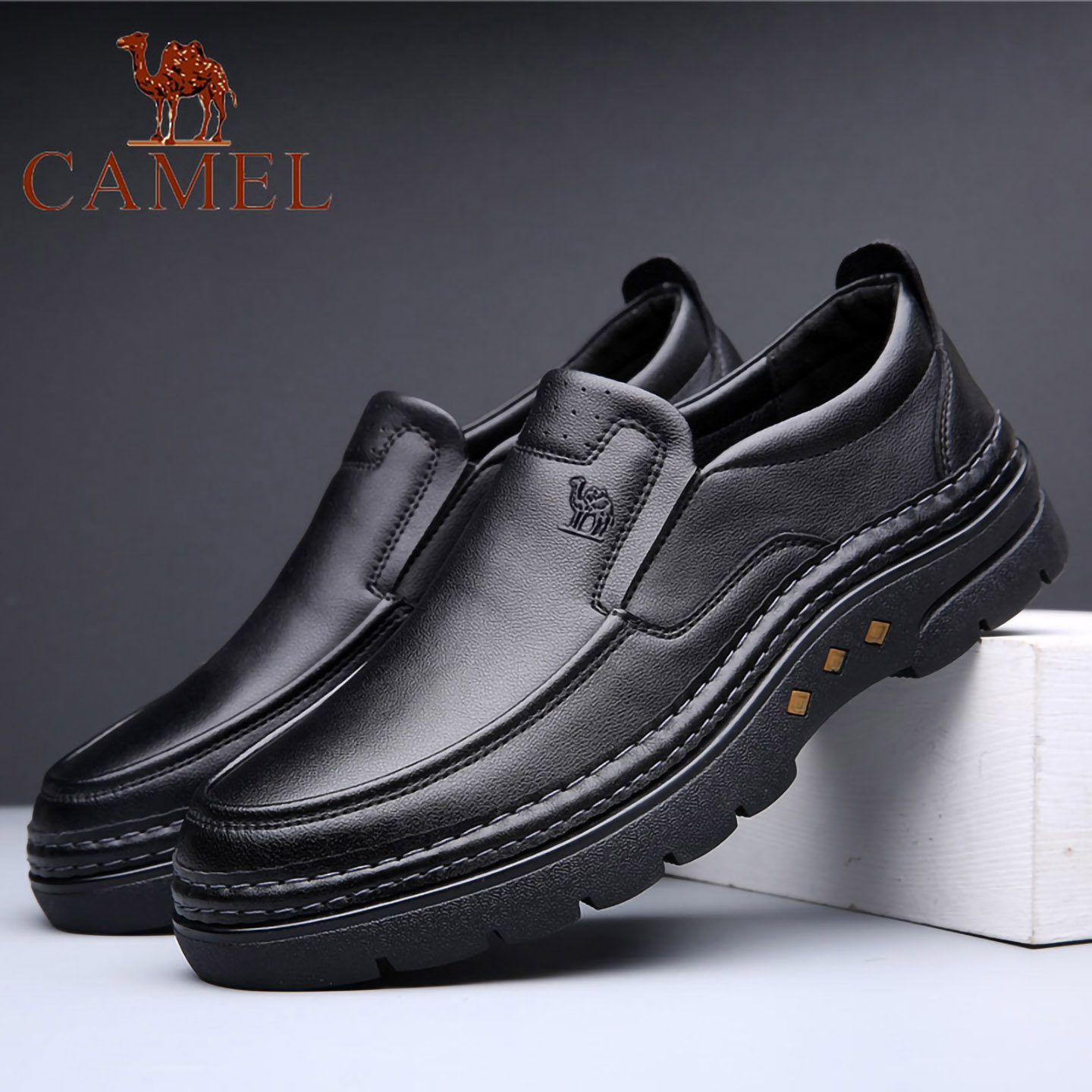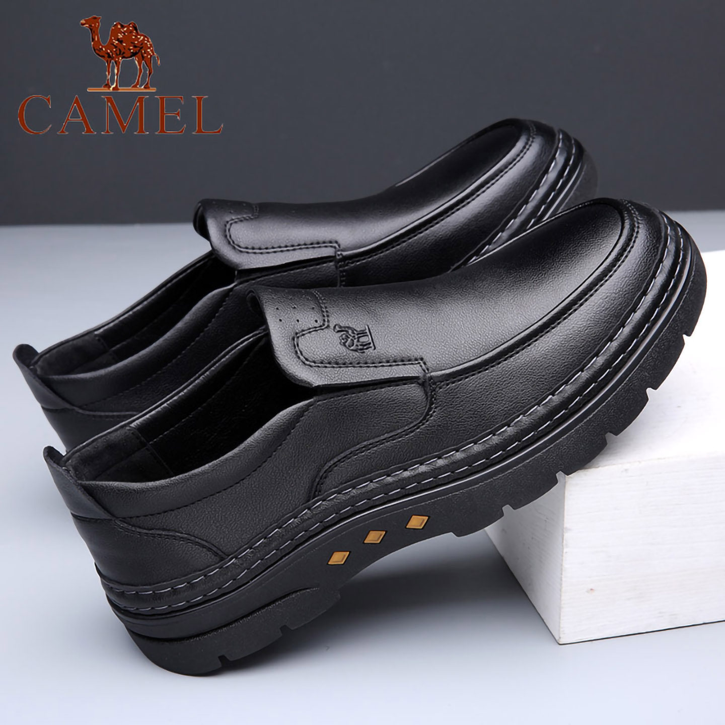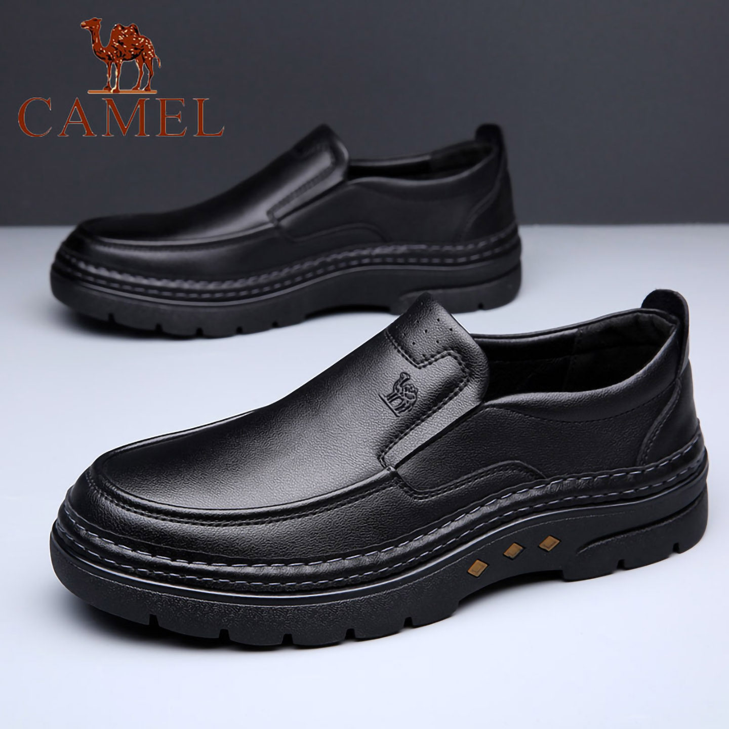 Camel/骆驼男鞋真皮商务皮鞋2025手工缝线冬季加绒保暖爸爸棉鞋男