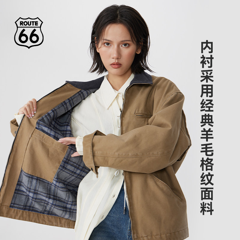 66号公路/route66秋季底特律夹克男巴恩风加绒棉服美式工装外套男