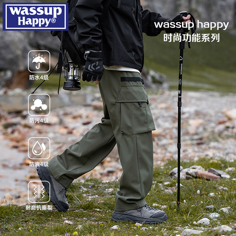 wassup happy登山防泼水冲锋长裤男秋季潮户外运动机能工装长裤子