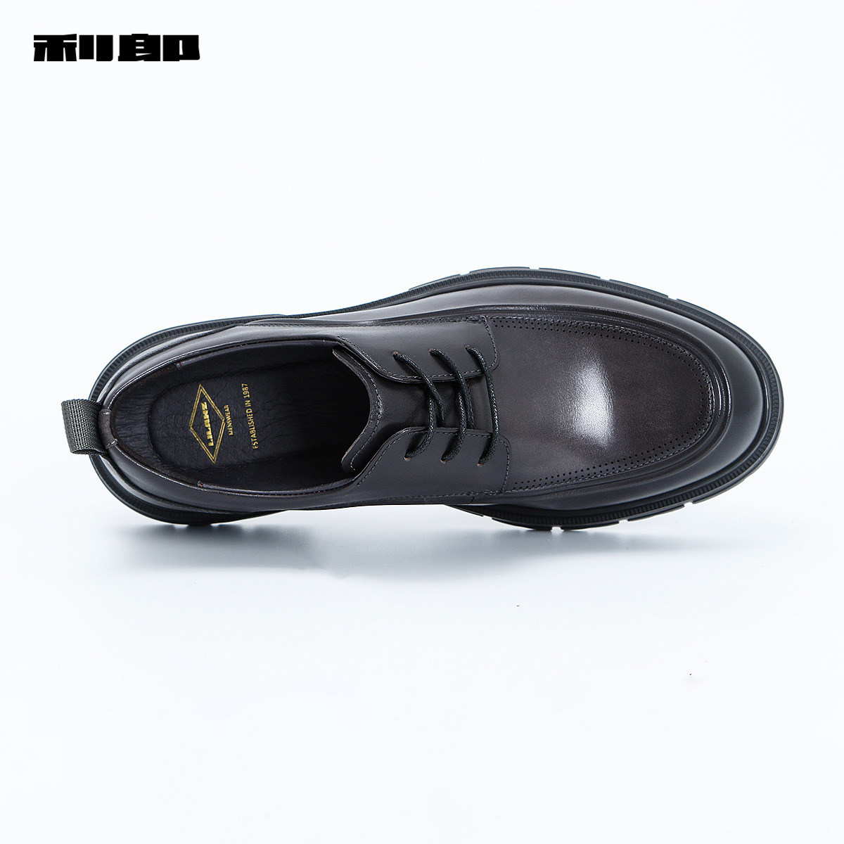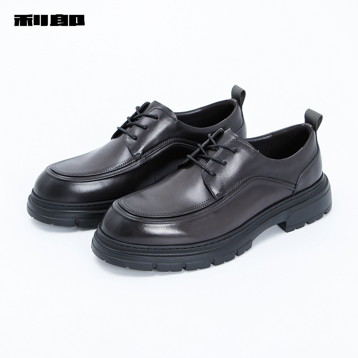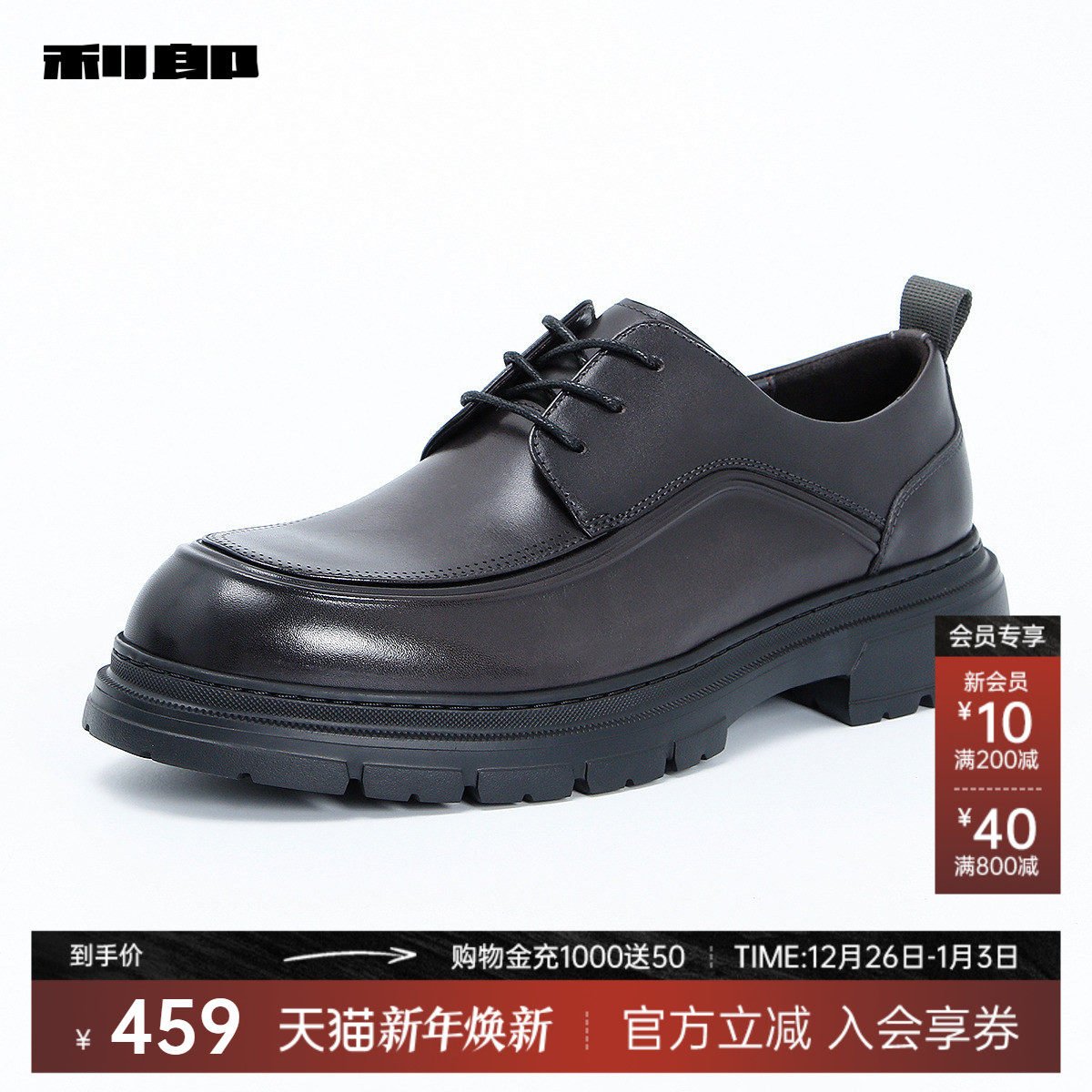 利郎官方 牛皮革正装皮鞋男士商务休闲纯色德比鞋2025新款鞋子男