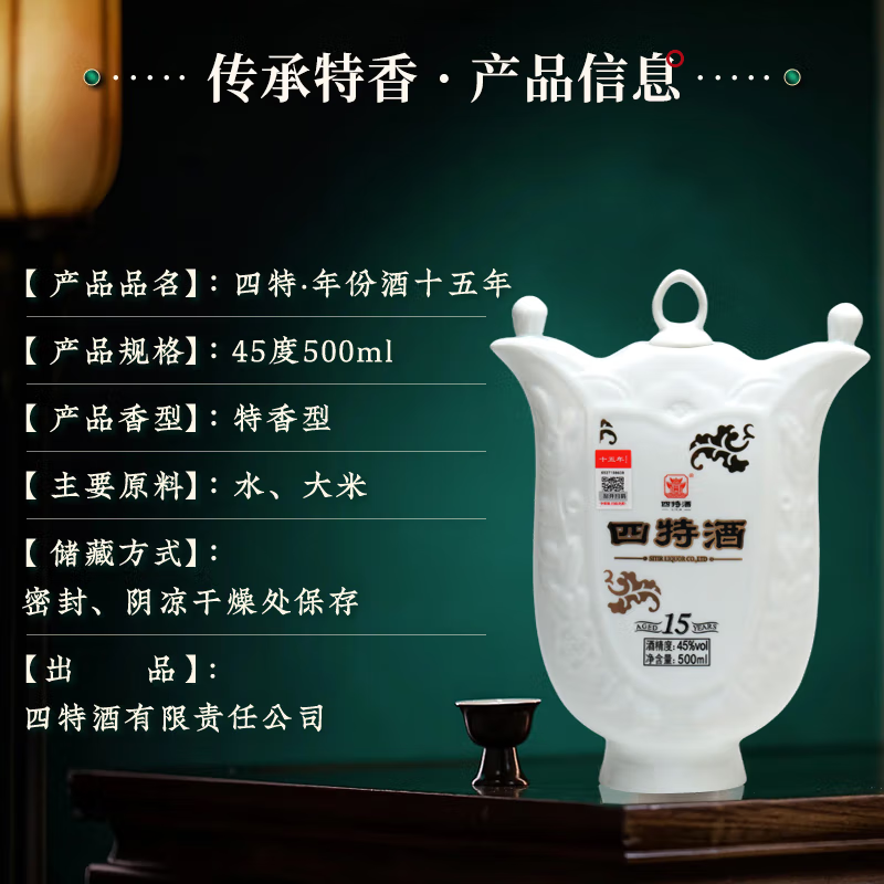 四特酒15年45度500ml 十五年礼盒装 特香型白酒 浓酱清一口三香