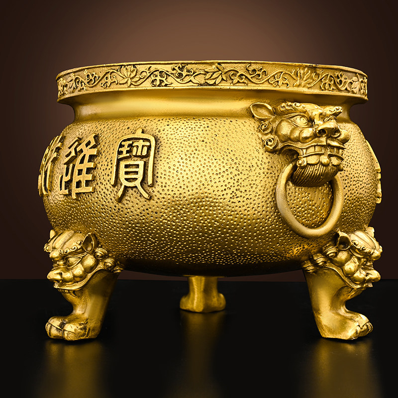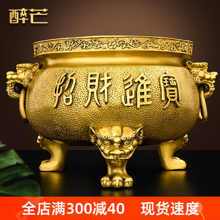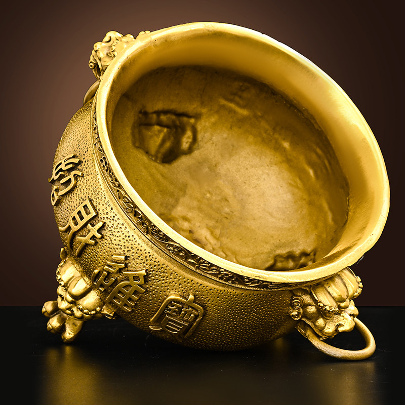 醉芒黄铜三足香炉佛堂家用供财神