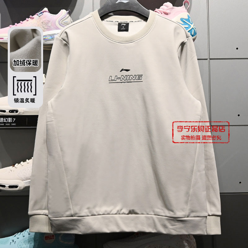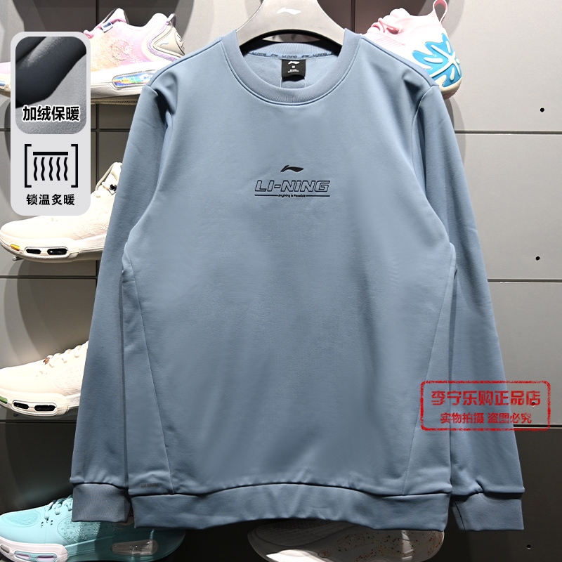 李宁男子健身系列针织无帽卫衣2025冬季新品加绒保暖上衣AWDV973
