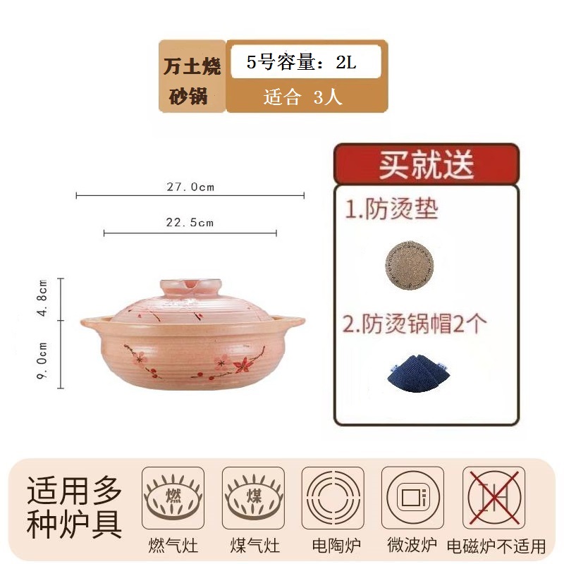 万土烧砂锅家用煲汤锅土锅小炖锅煮粥炖肉做菜耐高温燃气灶电陶炉