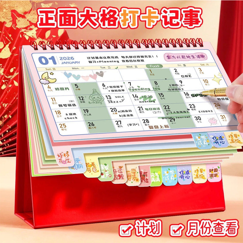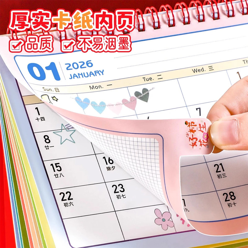 2026年新款卡通可爱花边台历商务办公桌面摆件ins风考研打卡自律简约马年喜庆日历公司年会月历活动翻页周历
