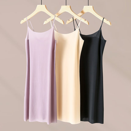 冰丝连衣裙女夏季吊带背心女内搭打底裙中长款衬裙真丝防走光睡裙