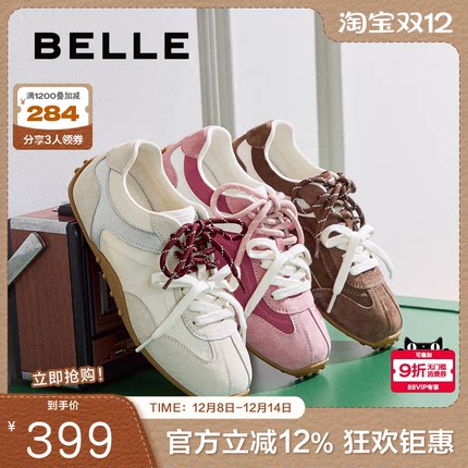 张艺凡同款百丽青春撞色德训鞋女秋新双绑带薄底休闲鞋E2N1DCM5