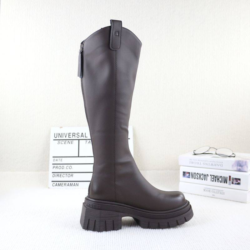 36秋冬季新款撤柜粗高跟厚底单里V口后拉链显瘦时尚女高筒骑士靴