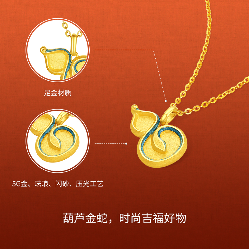 周六福5G足金吊坠黄金计价吉祥金蛇葫芦挂坠生肖蛇系列节日礼物